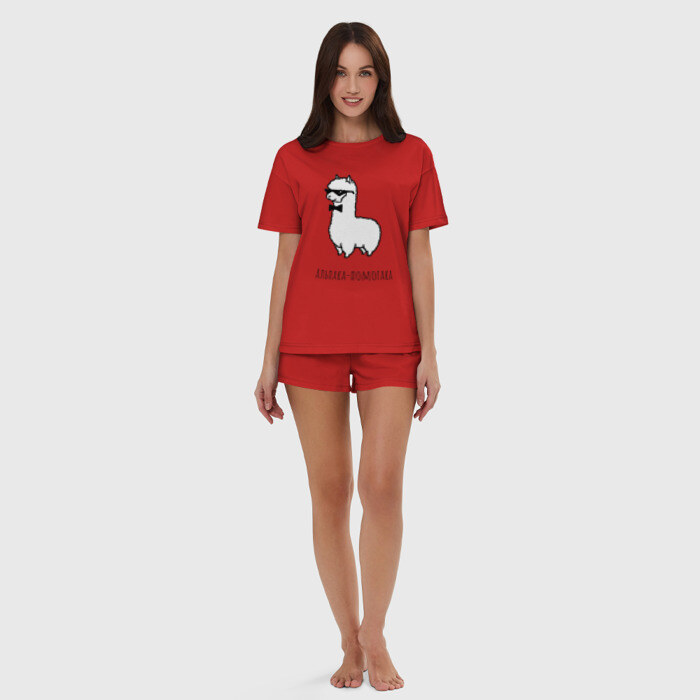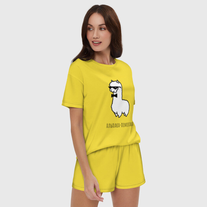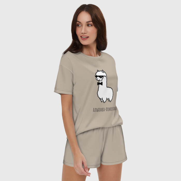 Женская пижама с шортиками хлопок с принтом Альпака-помогака