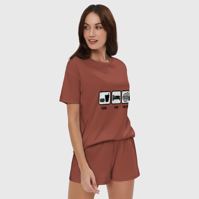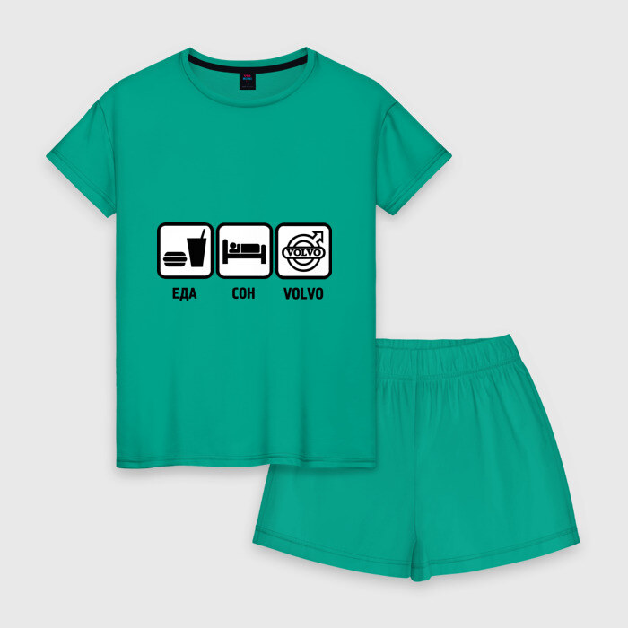 Женская пижама с шортиками хлопок с принтом Главное в жизни - еда, сон, volvo.
