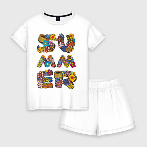 Женская пижама с шортиками хлопок с принтом Summer flowers