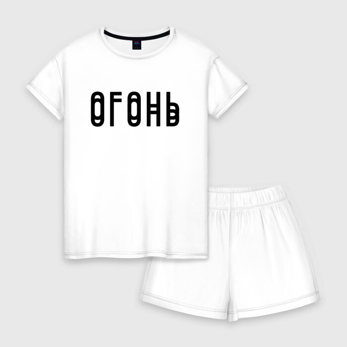 Женская пижама с шортиками хлопок с принтом Огонь Black