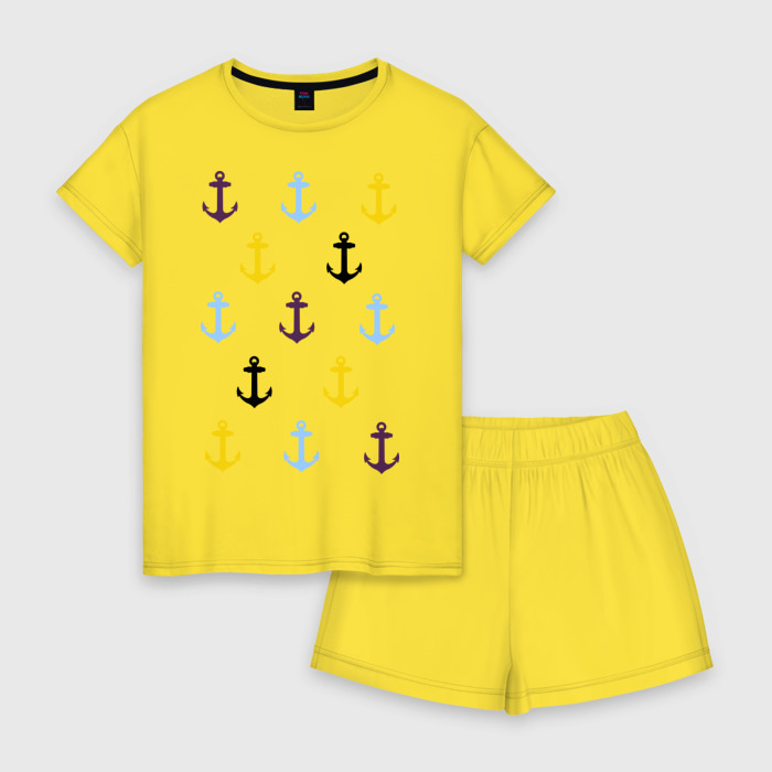 Женская пижама с шортиками хлопок с принтом Anchors pattern