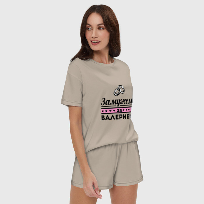 Женская пижама с шортиками хлопок с принтом Замужем за Валерием