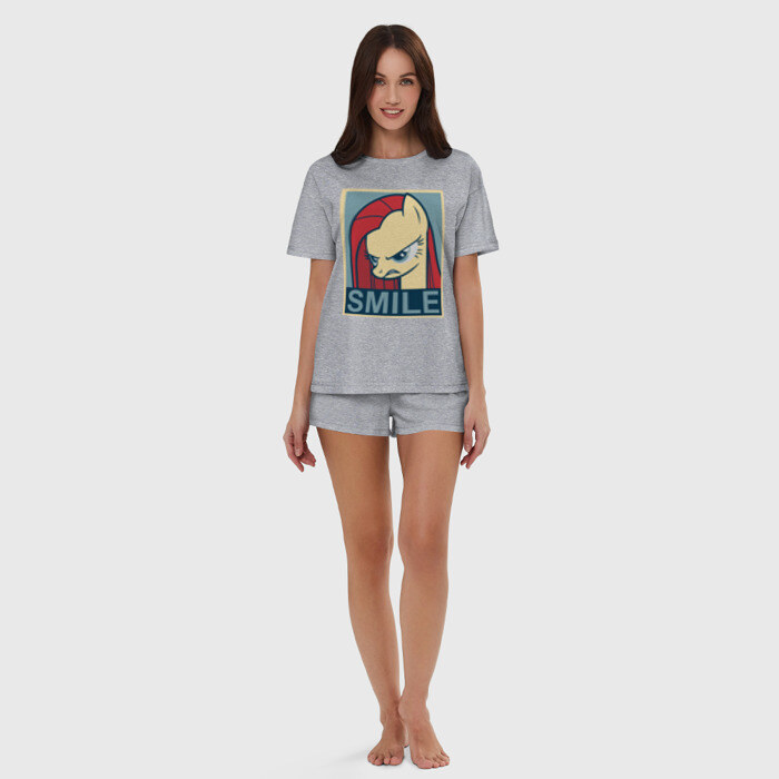 Пижама сшита из мягкого хлопка. Базовую хлопковую футболку дополняют такого же цвета шорты свободного кроя с мягкой резинкой. Принт наносится только на футболку. Пара может стать удобной одеждой как для дома, так и для сна.