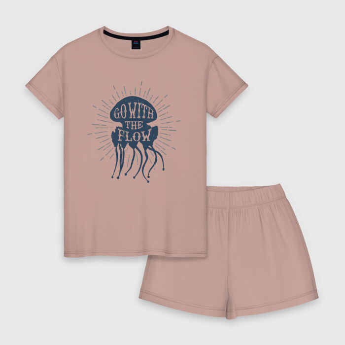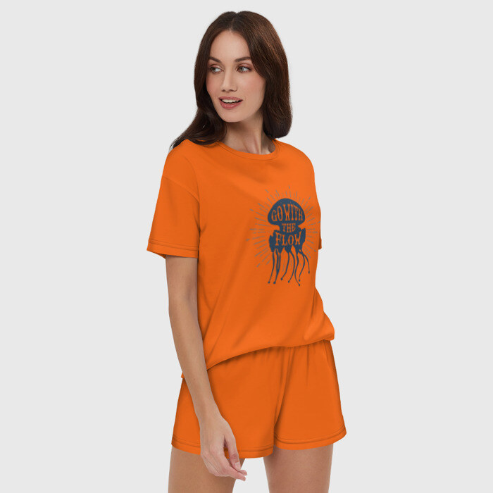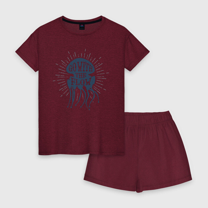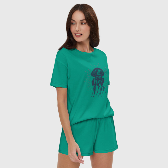 Женская пижама с шортиками хлопок с принтом Go with the flow