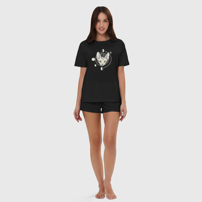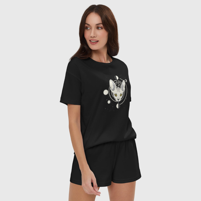 Женская пижама с шортиками хлопок с принтом Кот с Лунами