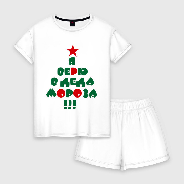 Женская пижама с шортиками хлопок с принтом я верю в деда мороза