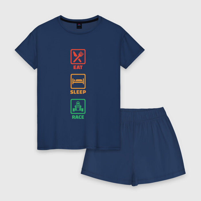 Женская пижама с шортиками хлопок с принтом eat sleep race