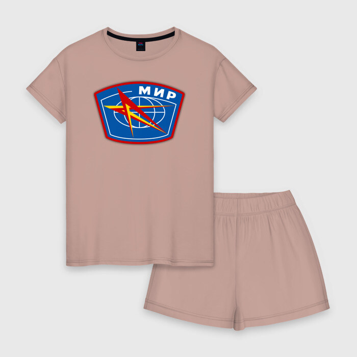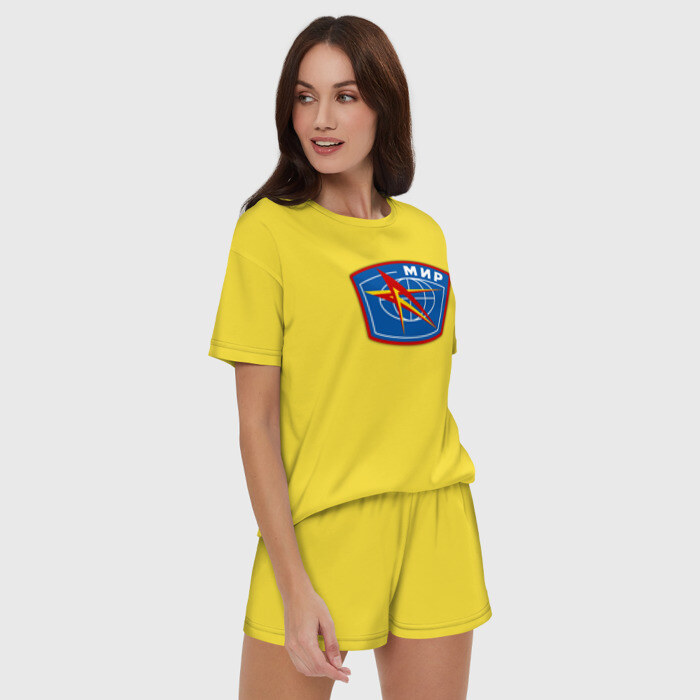 Женская пижама с шортиками хлопок с принтом Космическая станция Мир