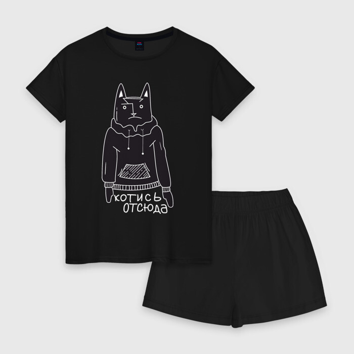 Женская пижама с шортиками хлопок с принтом Котись отсюда