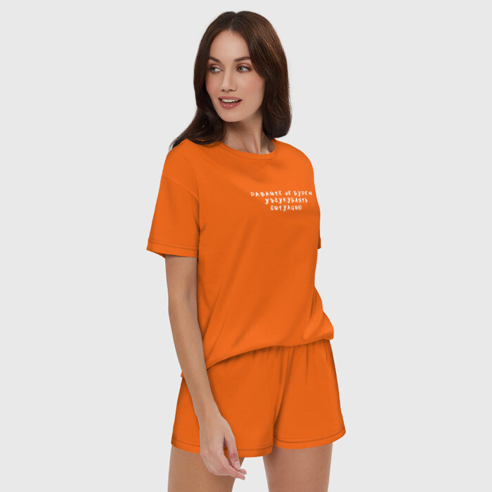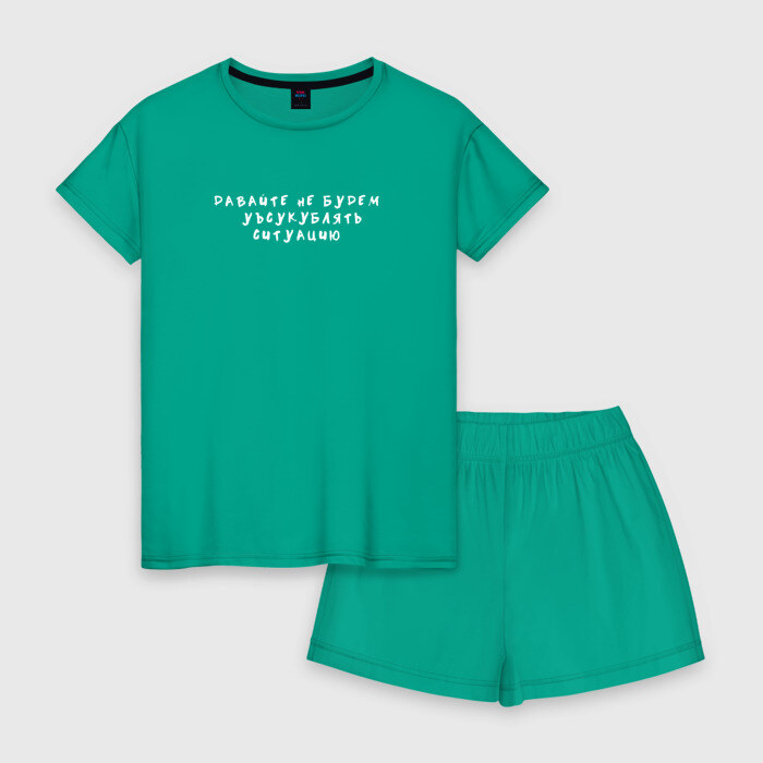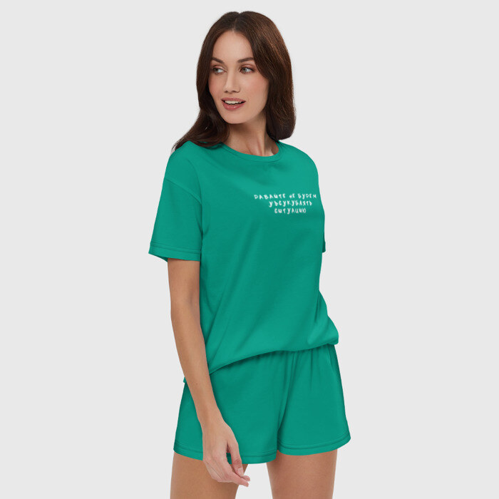 Женская пижама с шортиками хлопок с принтом Усукублять (белый)