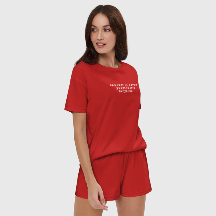 Пижама сшита из мягкого хлопка. Базовую хлопковую футболку дополняют такого же цвета шорты свободного кроя с мягкой резинкой. Принт наносится только на футболку. Пара может стать удобной одеждой как для дома, так и для сна.