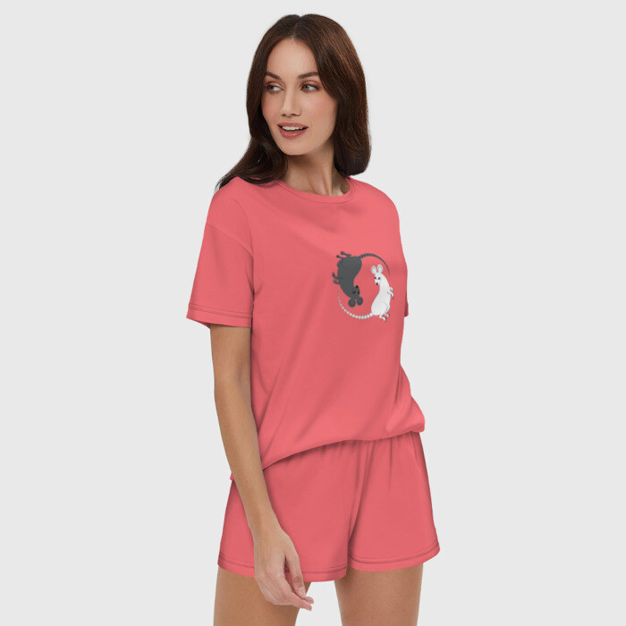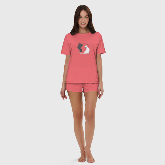 Женская пижама с шортиками хлопок с принтом Крысы Инь Ян 2020 год