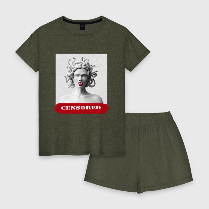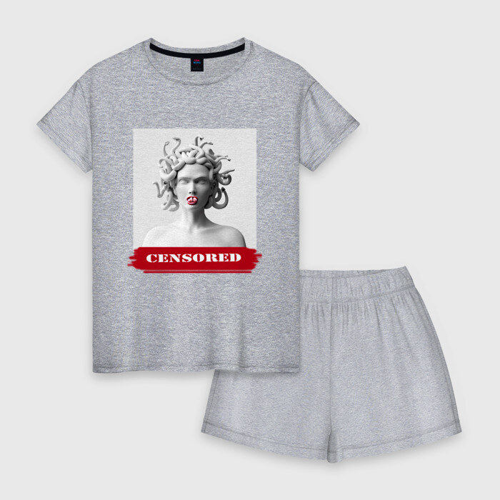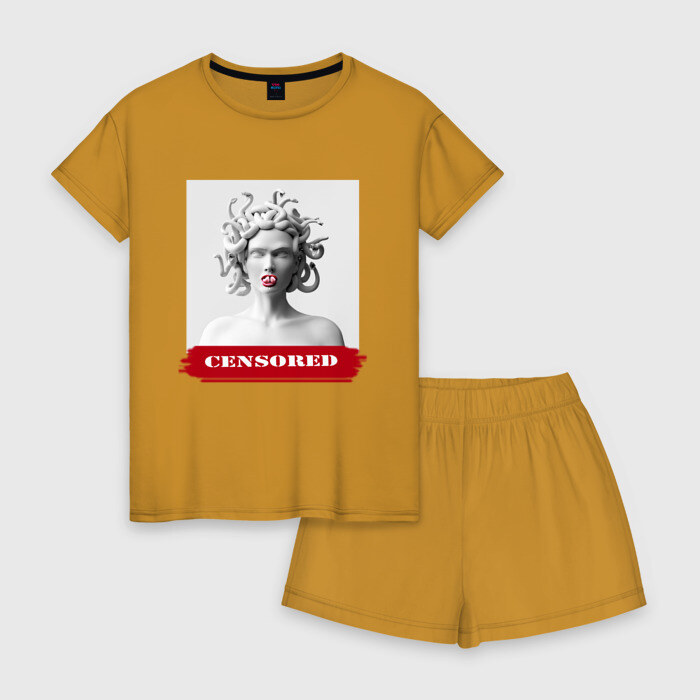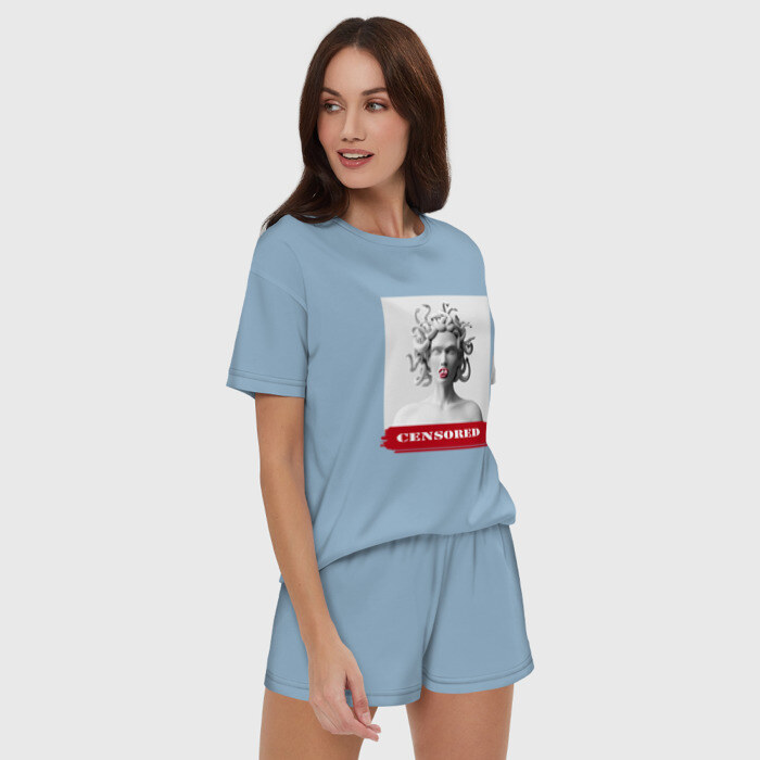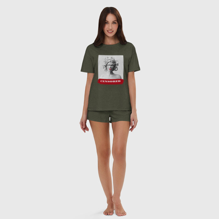 Женская пижама с шортиками хлопок с принтом Медуза Горгона со сплитом языка
