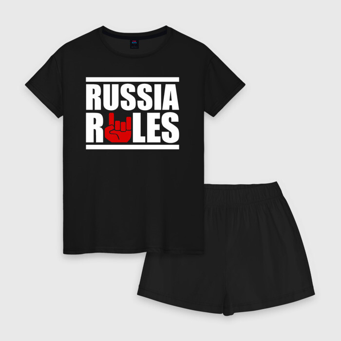 Женская пижама с шортиками хлопок с принтом Russia rules