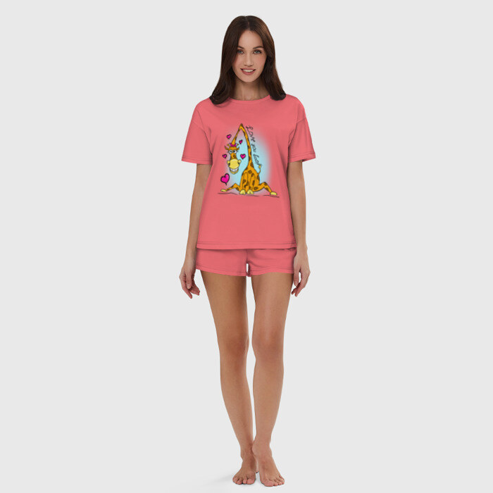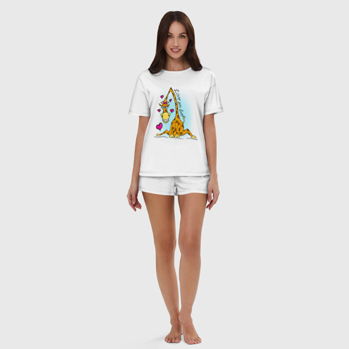 Пижама сшита из мягкого хлопка. Базовую хлопковую футболку дополняют такого же цвета шорты свободного кроя с мягкой резинкой. Принт наносится только на футболку. Пара может стать удобной одеждой как для дома, так и для сна.