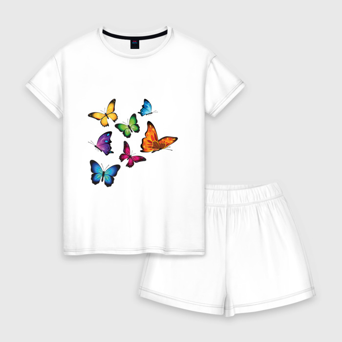 Женская пижама с шортиками хлопок с принтом Бабочки