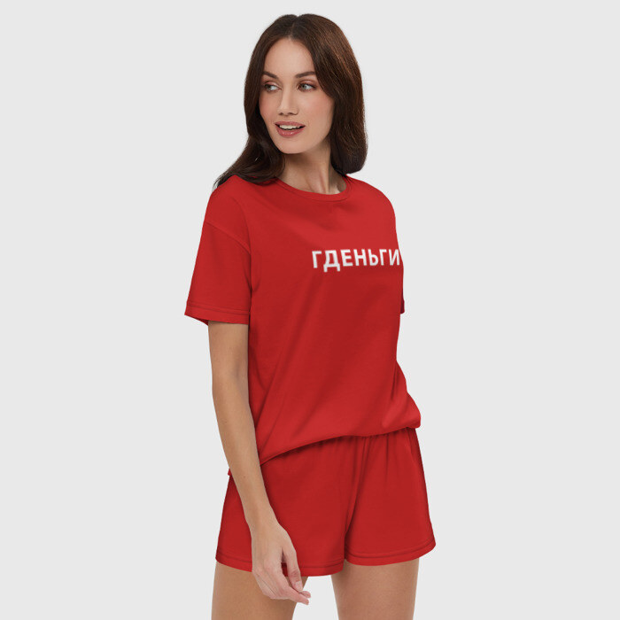 Женская пижама с шортиками хлопок с принтом ГДЕНЬГИ (Z)
