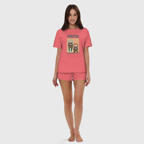 Пижама сшита из мягкого хлопка. Базовую хлопковую футболку дополняют такого же цвета шорты свободного кроя с мягкой резинкой. Принт наносится только на футболку. Пара может стать удобной одеждой как для дома, так и для сна.