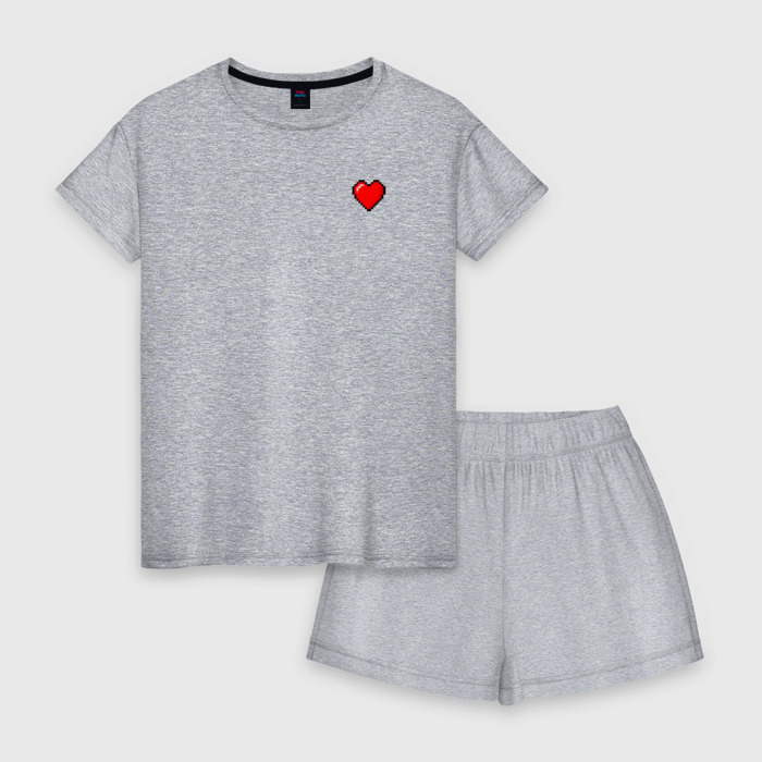 Женская пижама с шортиками хлопок с принтом Сердце 2D 8 бит