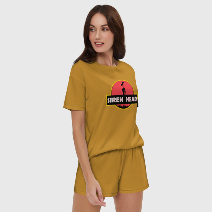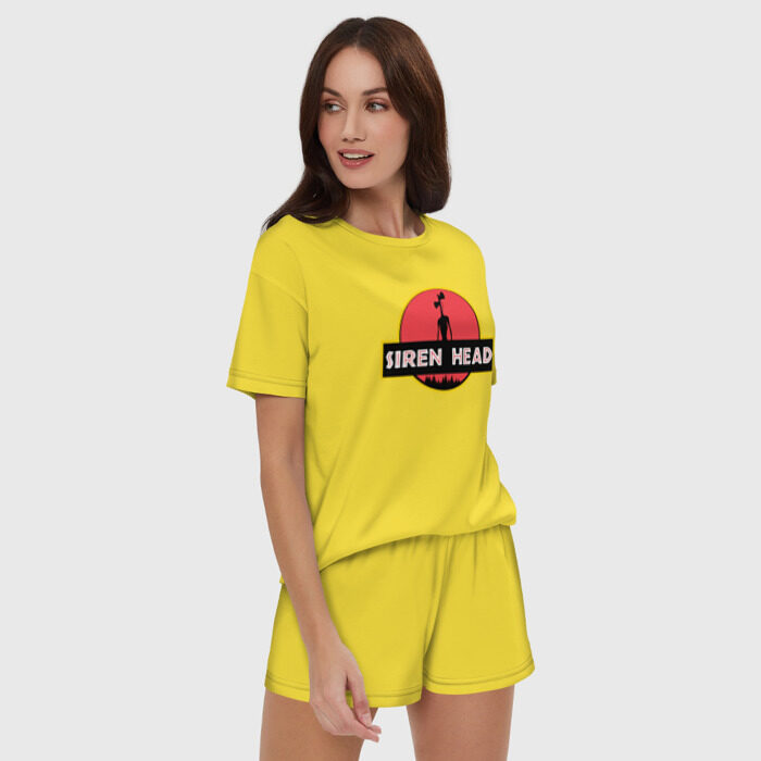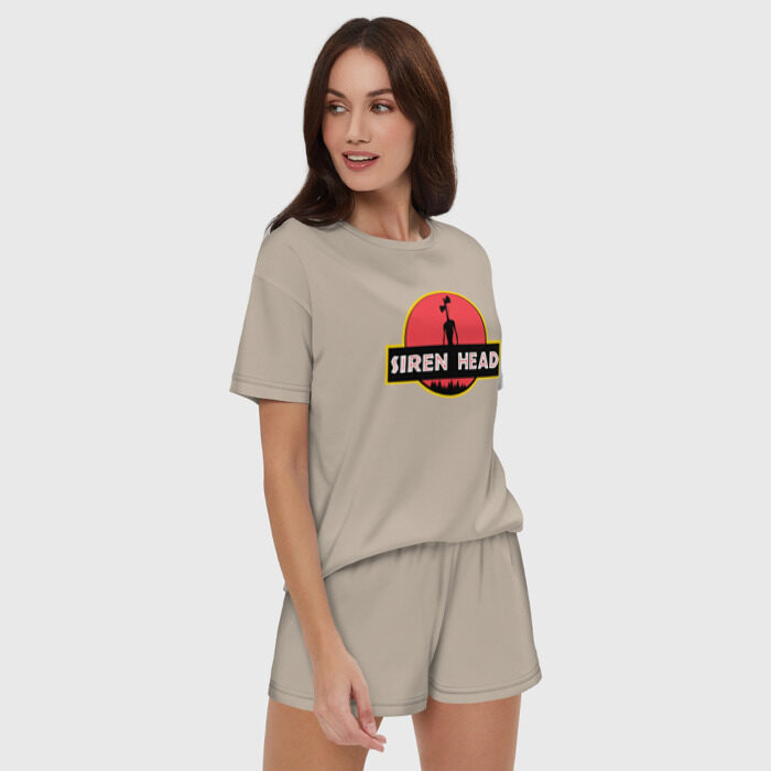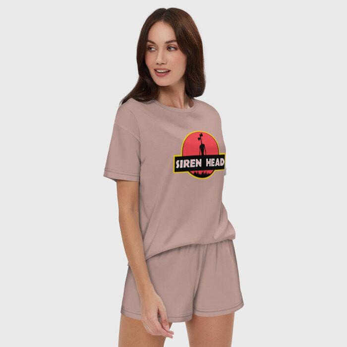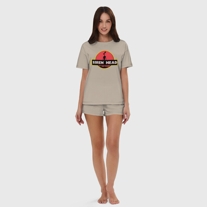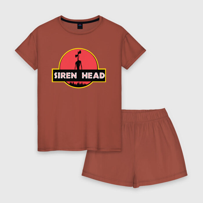Женская пижама с шортиками хлопок с принтом Сиреноголовый