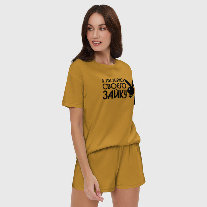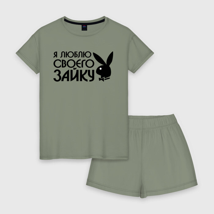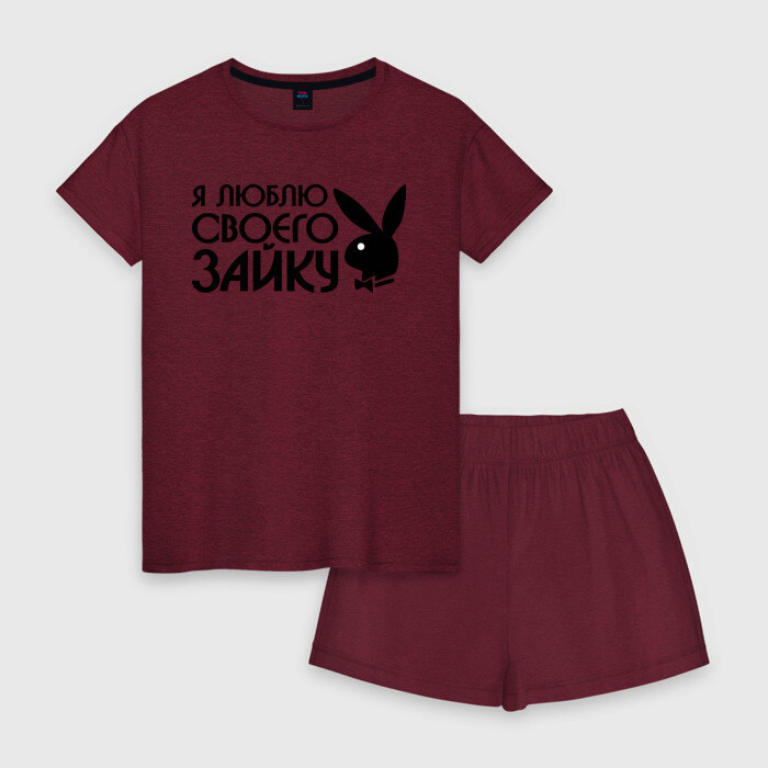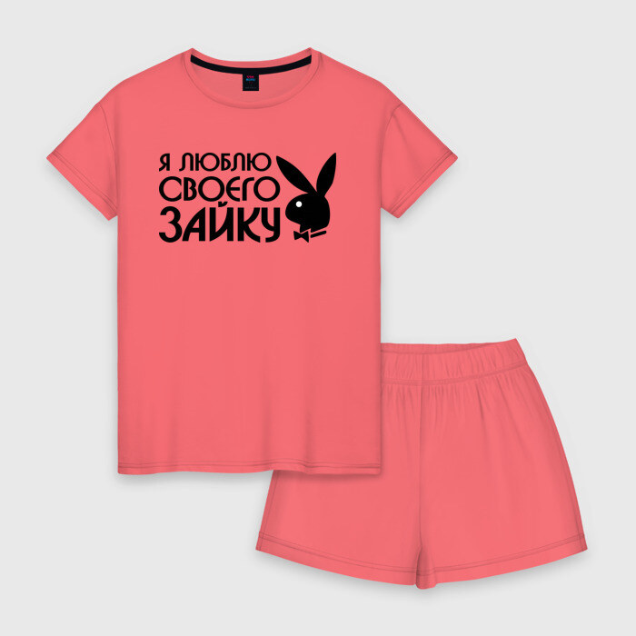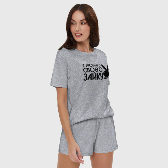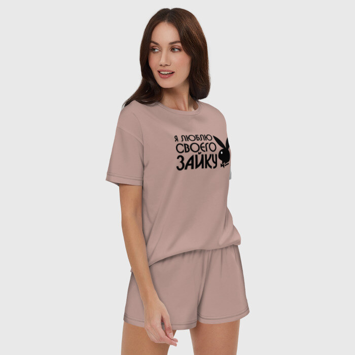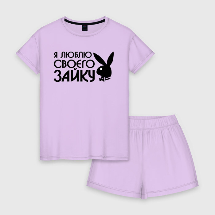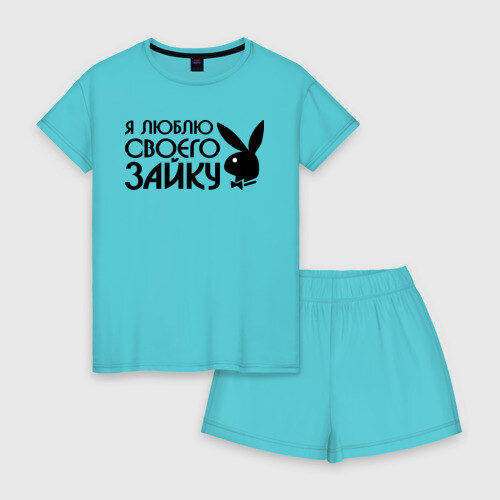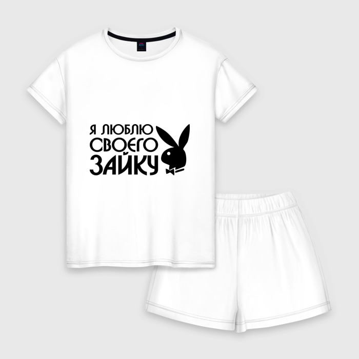 Женская пижама с шортиками хлопок с принтом Я люблю своего зайку