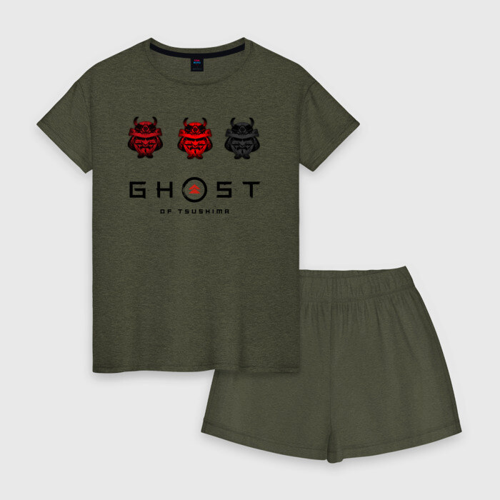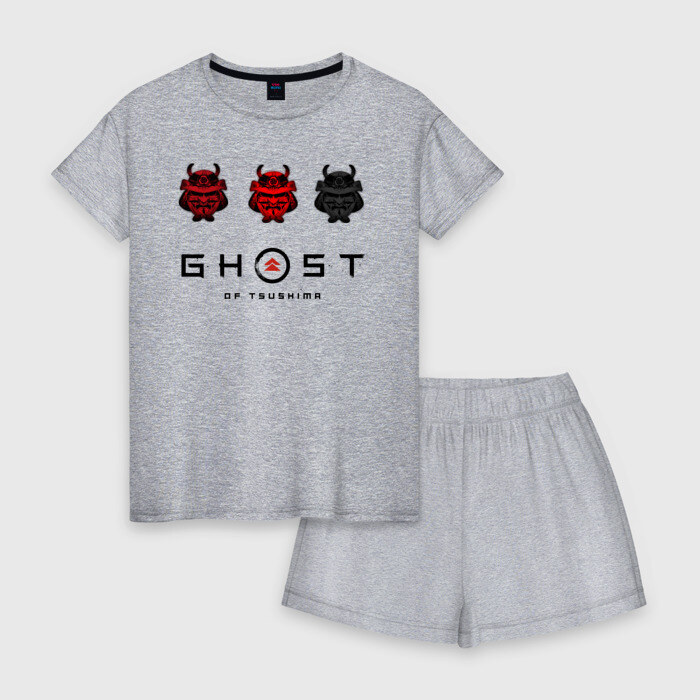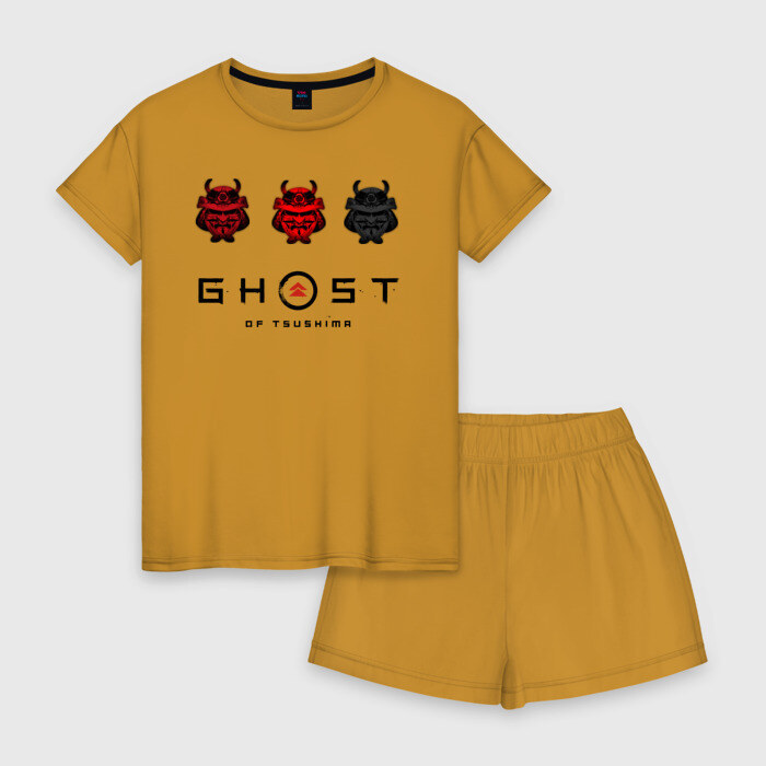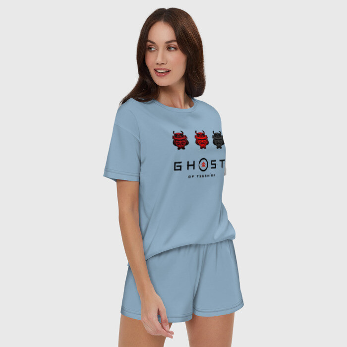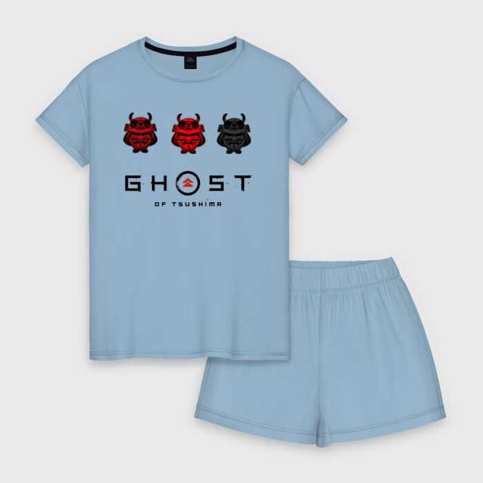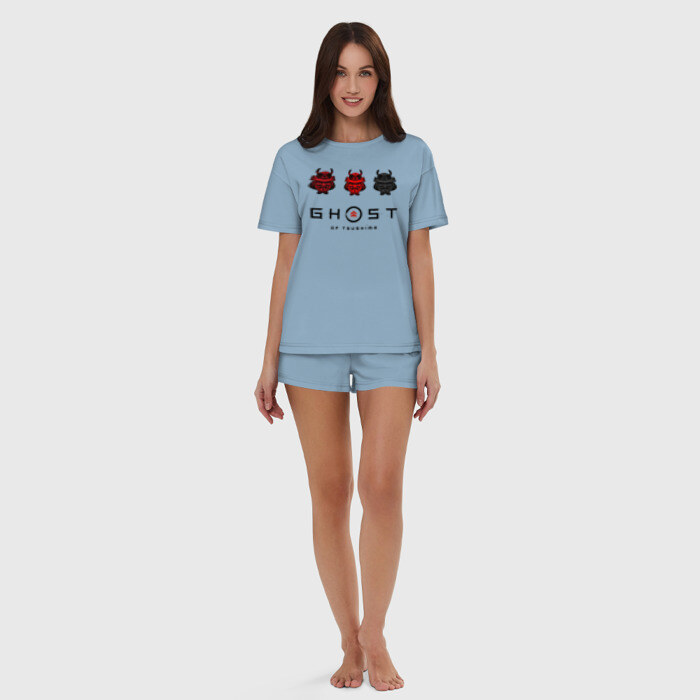 Женская пижама с шортиками хлопок с принтом Призрак Цусимы