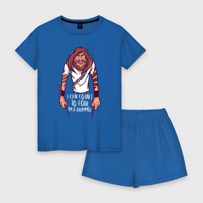 Женская пижама с шортиками хлопок с принтом Я барабанщик