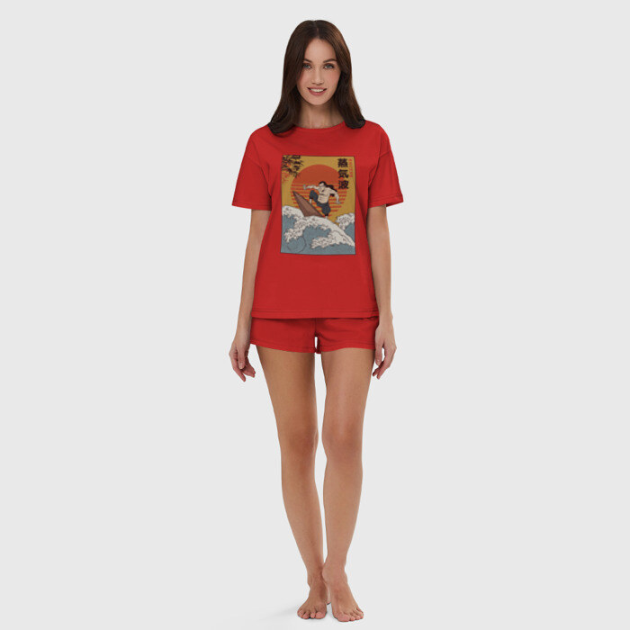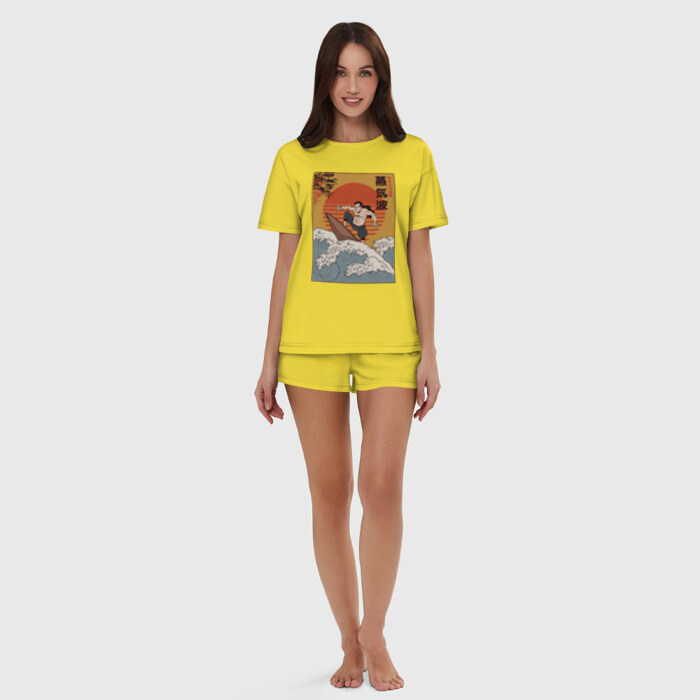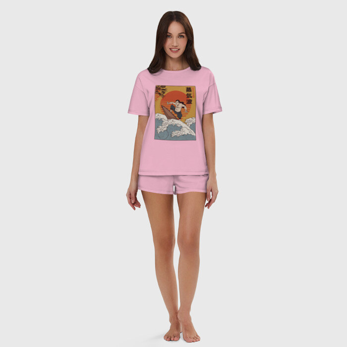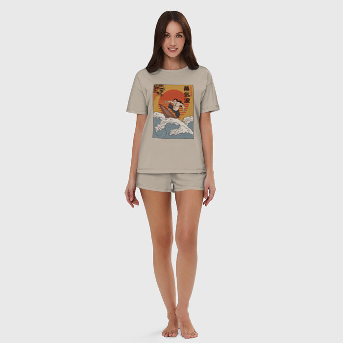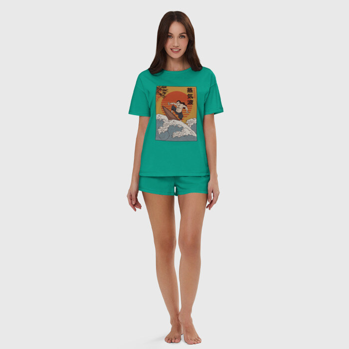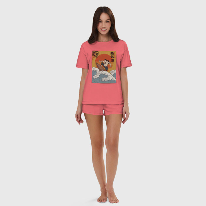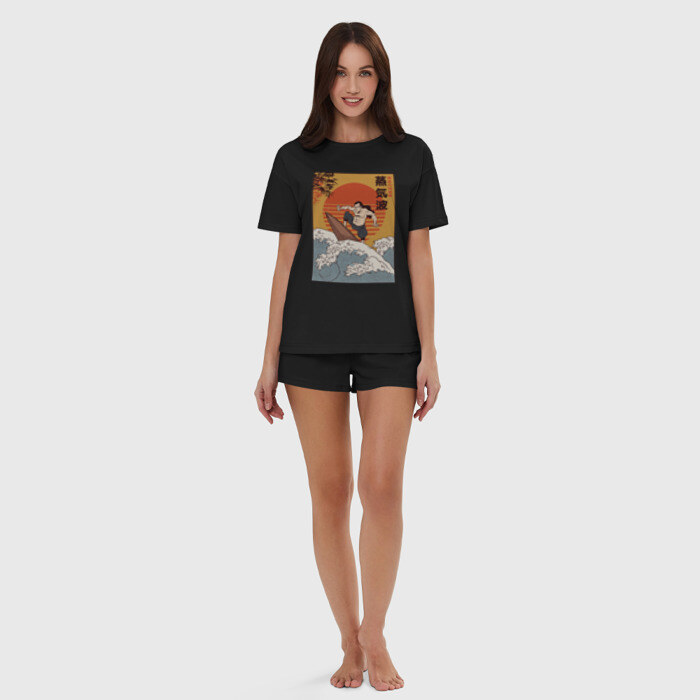 Женская пижама с шортиками хлопок с принтом Samurai Surfing