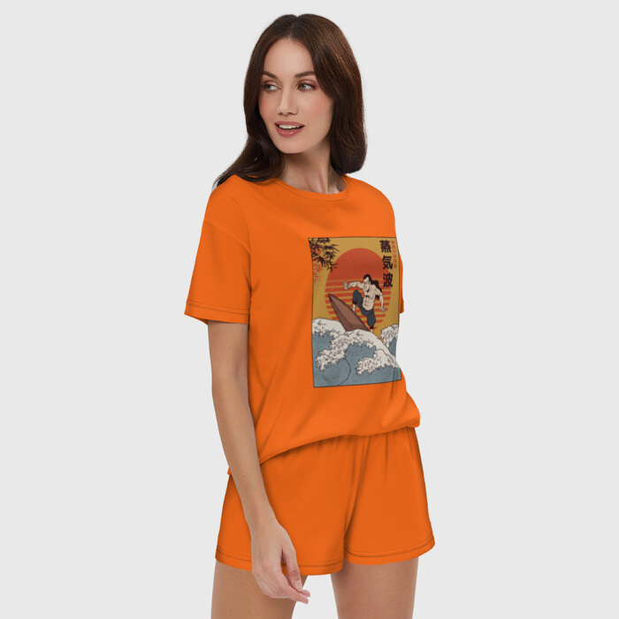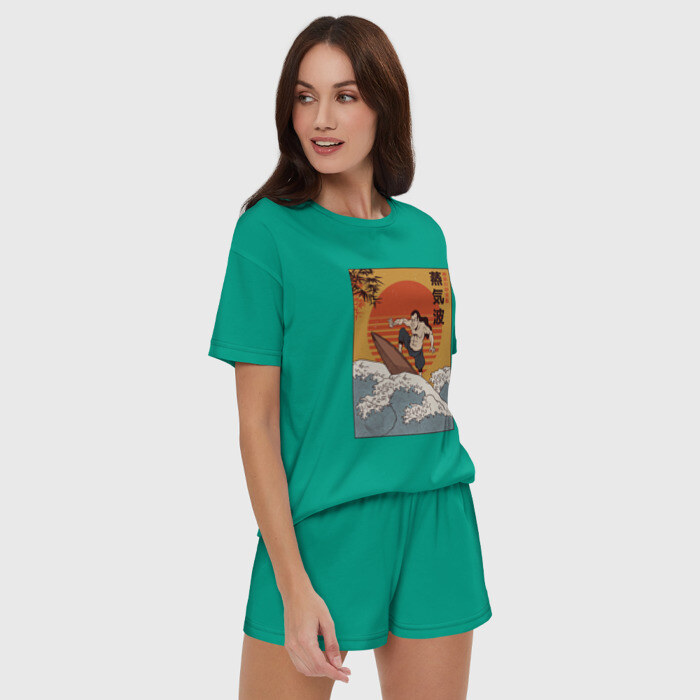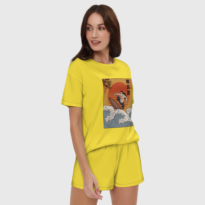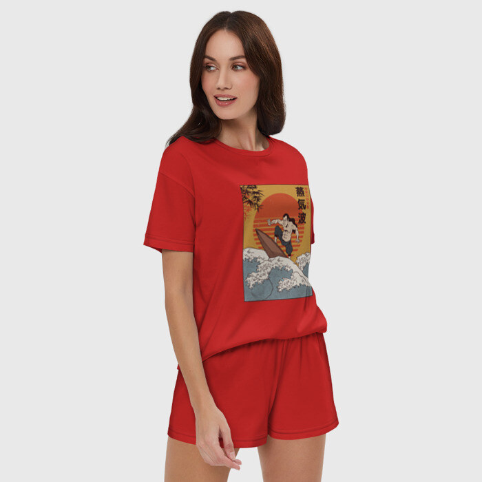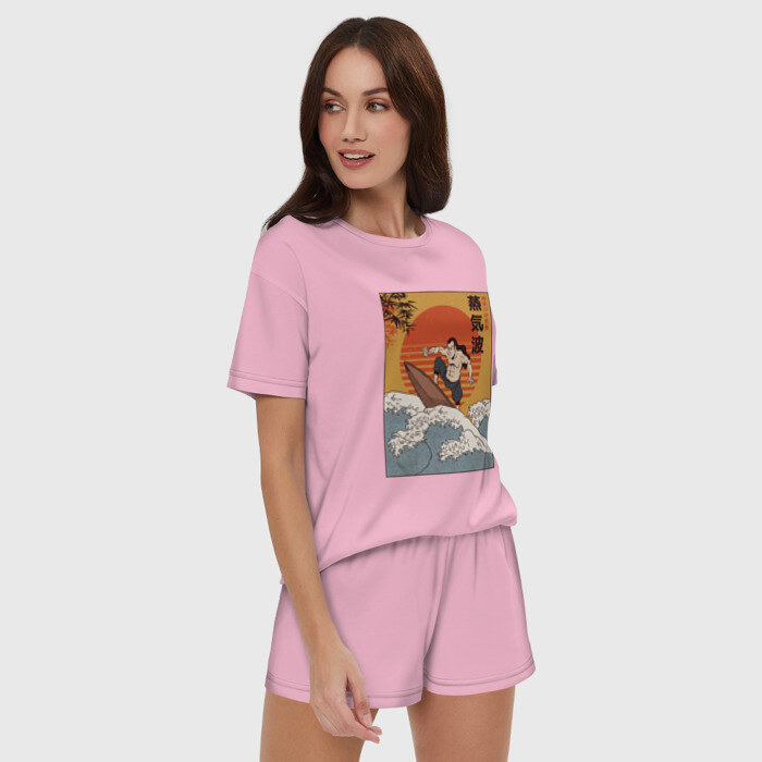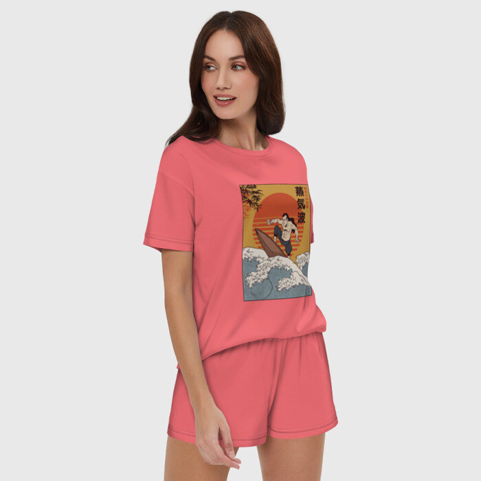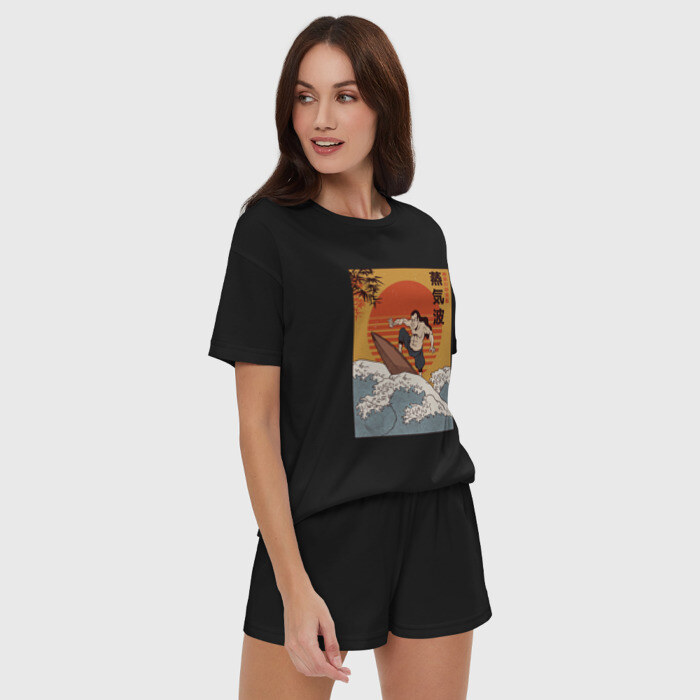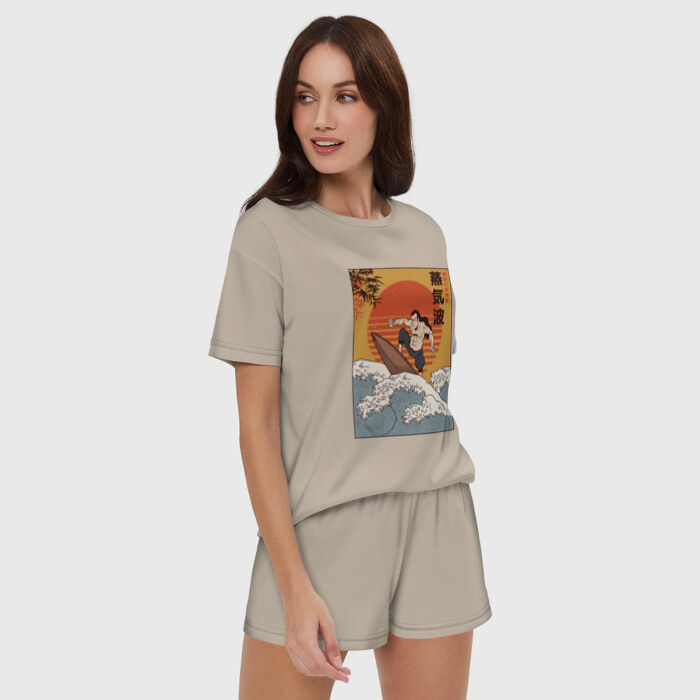 Женская пижама с шортиками хлопок с принтом Samurai Surfing