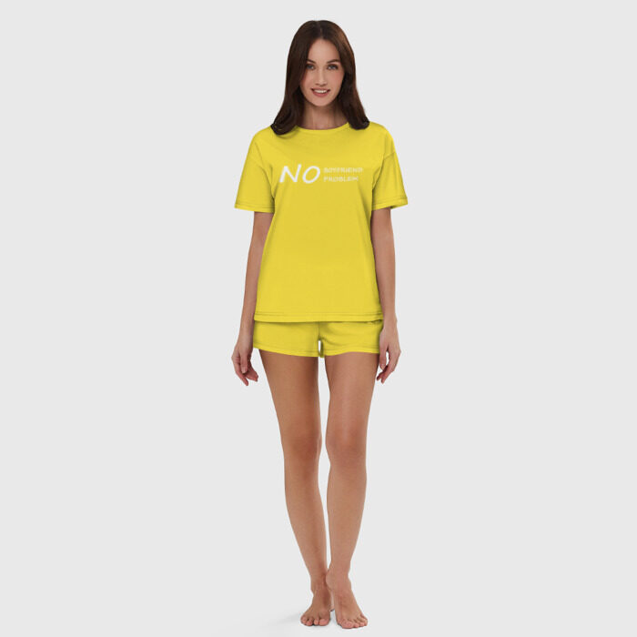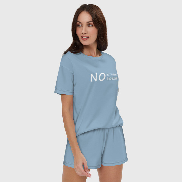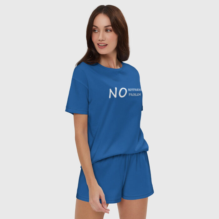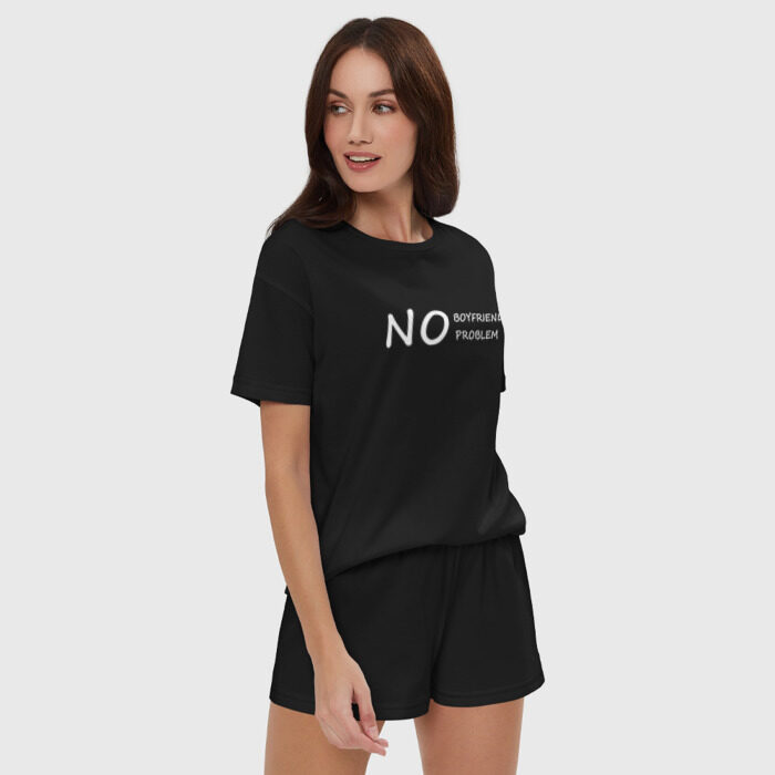 Женская пижама с шортиками хлопок с принтом No boyfriend no problem