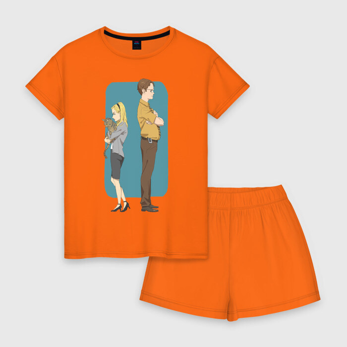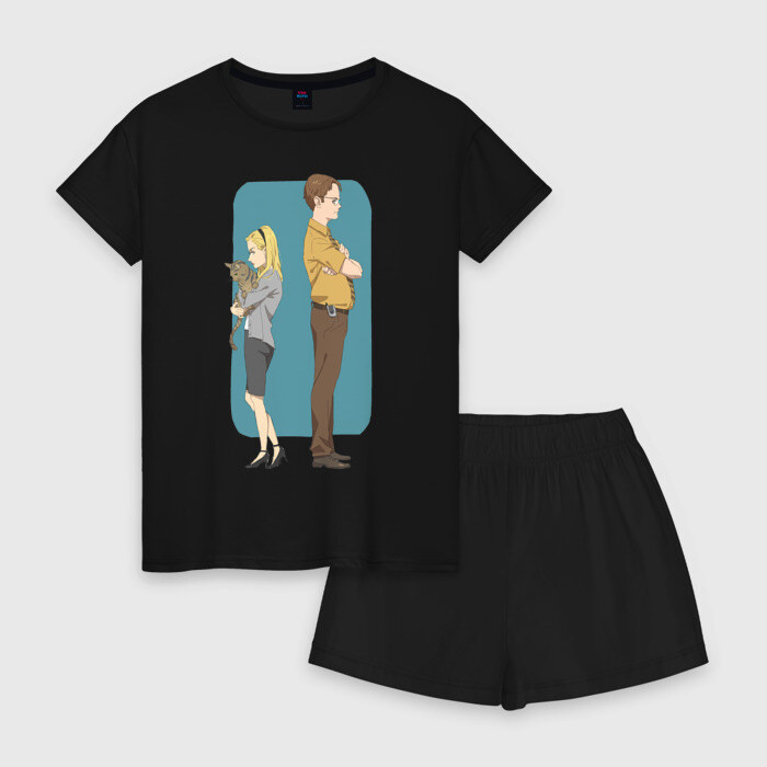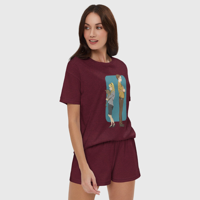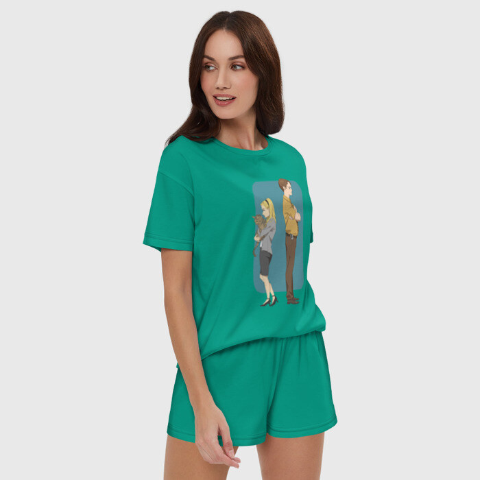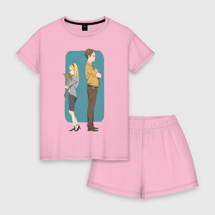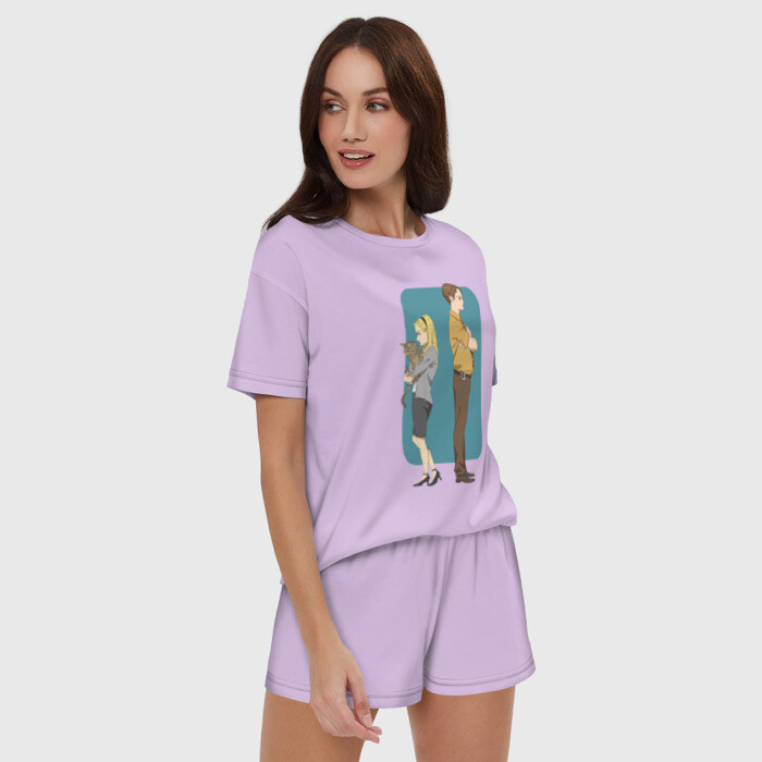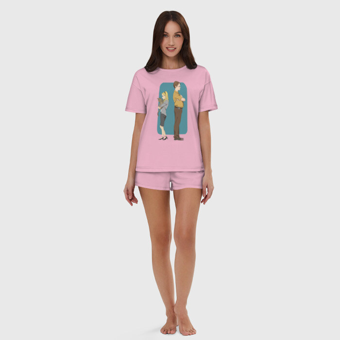 Женская пижама с шортиками хлопок с принтом Офис