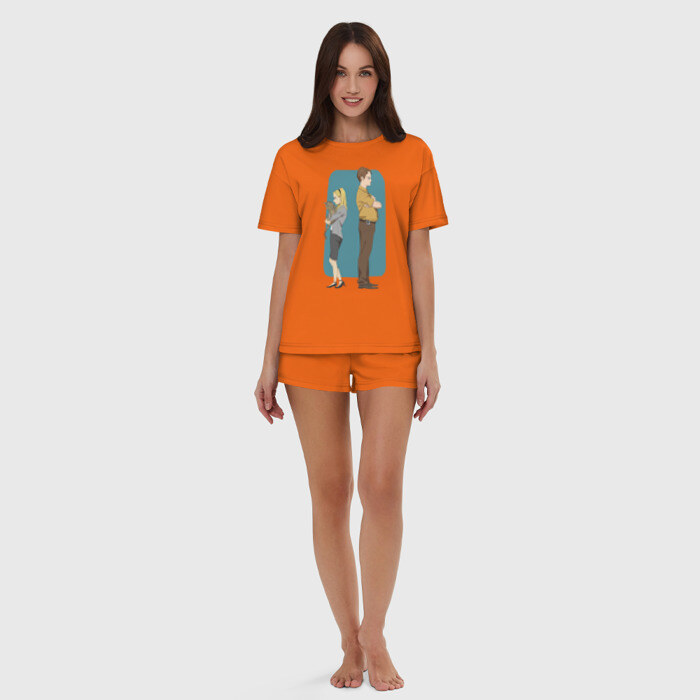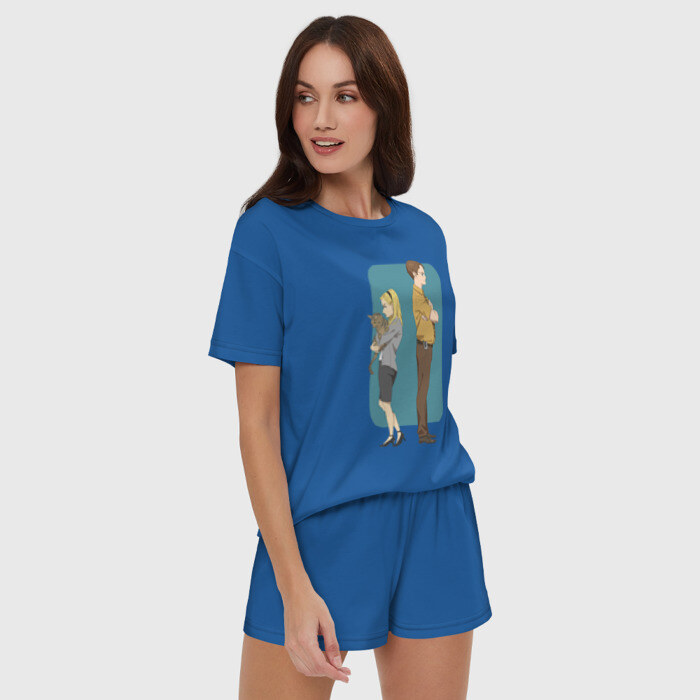 Пижама сшита из мягкого хлопка. Базовую хлопковую футболку дополняют такого же цвета шорты свободного кроя с мягкой резинкой. Принт наносится только на футболку. Пара может стать удобной одеждой как для дома, так и для сна.