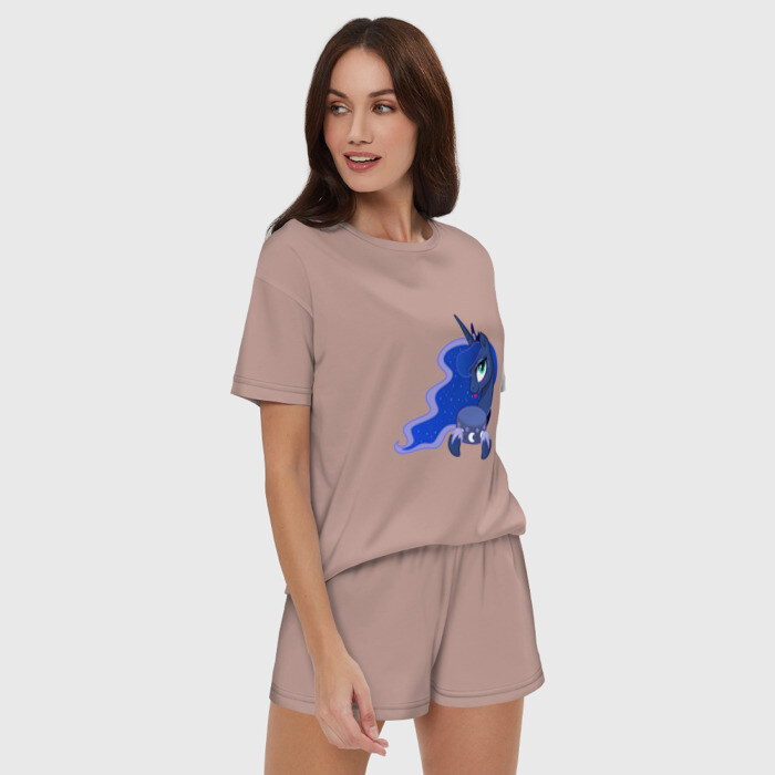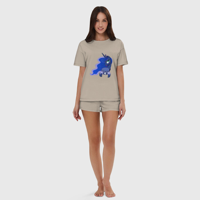 Женская пижама с шортиками хлопок с принтом Принцесса Луна с тортиком