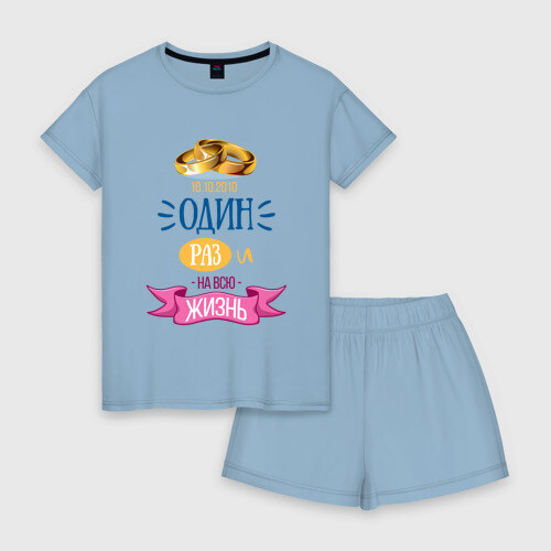 Женская пижама с шортиками хлопок с принтом Один раз и на всю жизнь