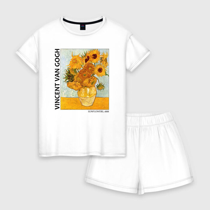 Женская пижама с шортиками хлопок с принтом Подсолнухи (Винсент Ван Гог)