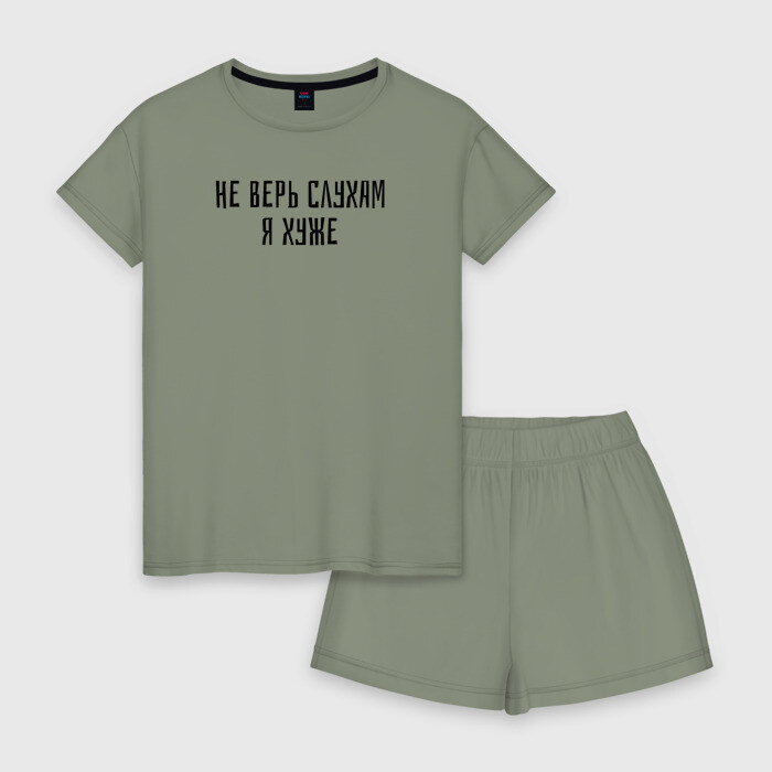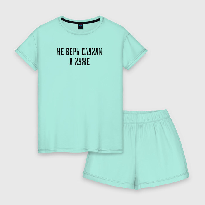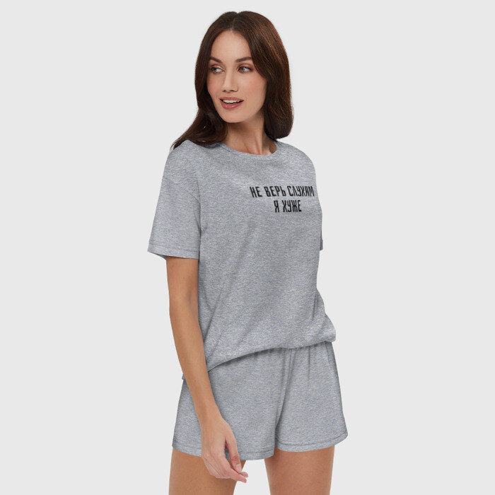 Женская пижама с шортиками хлопок с принтом не верь слухам я хуже