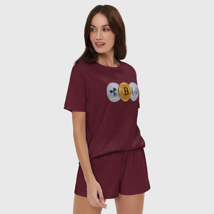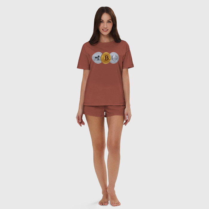 Женская пижама с шортиками хлопок с принтом БИТКОИН ЭФИРИУМ РИПЛ