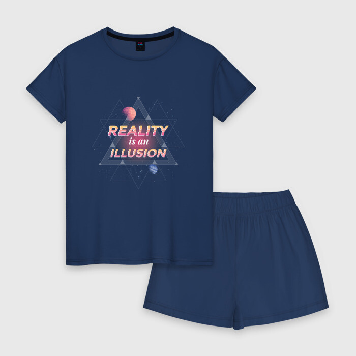 Женская пижама с шортиками хлопок с принтом Реальность это иллюзия