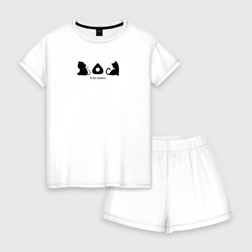 Женская пижама с шортиками хлопок с принтом Fruits basket rat onigiri cat