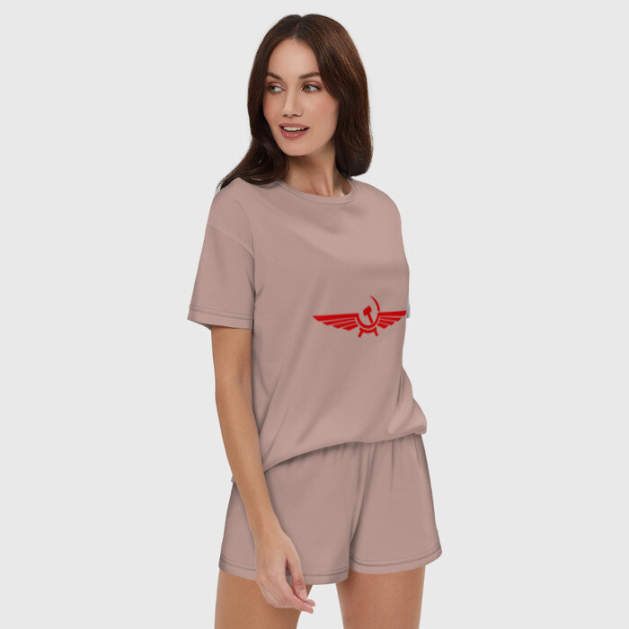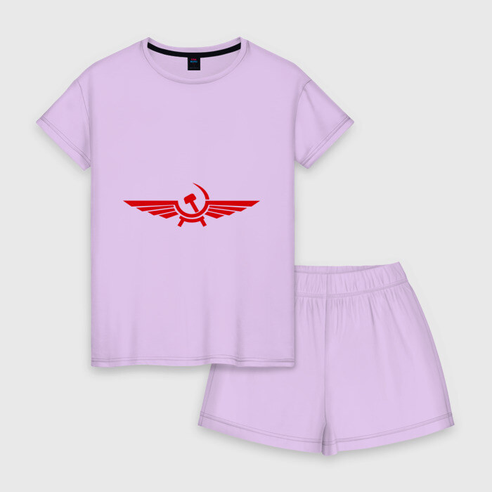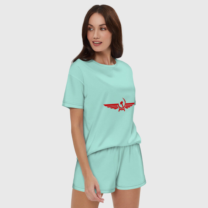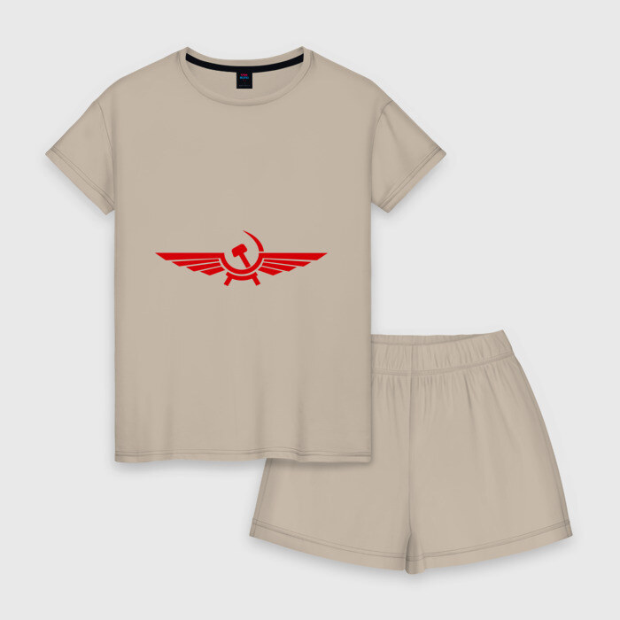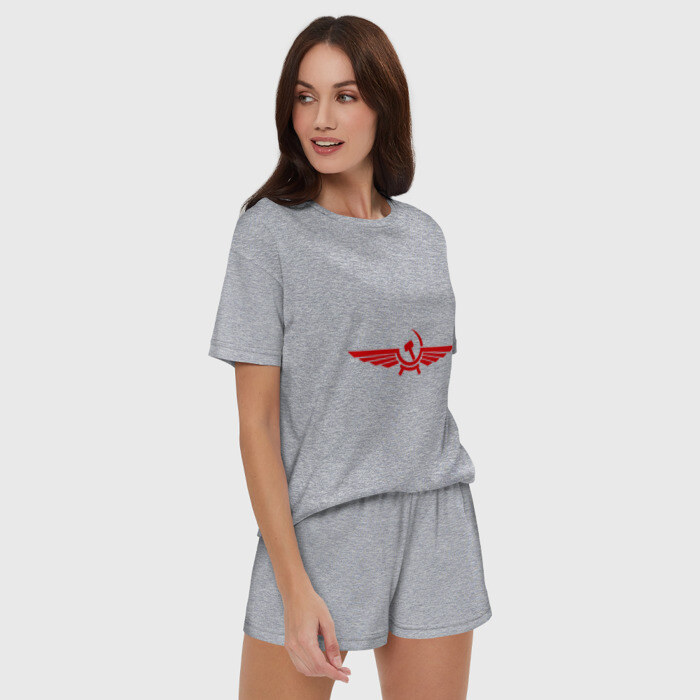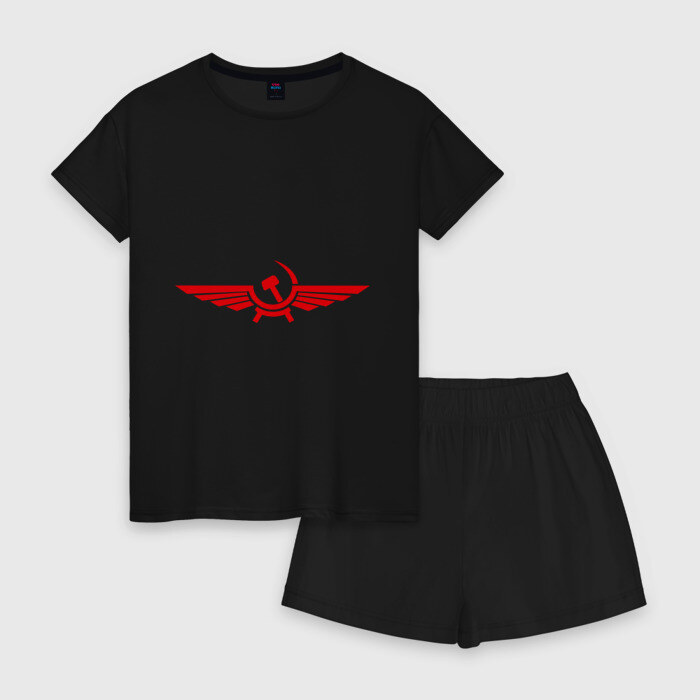 Женская пижама с шортиками хлопок с принтом Серп и молот в виде орла
