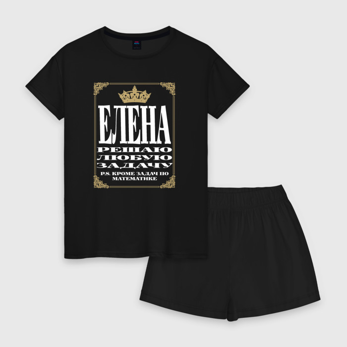 Женская пижама с шортиками хлопок с принтом Лена решит любые задачи, но не математические
