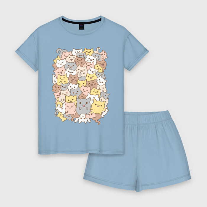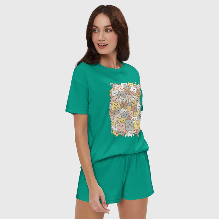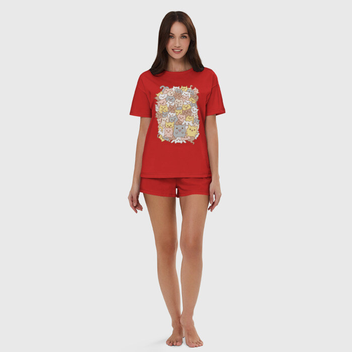 Женская пижама с шортиками хлопок с принтом Куча котиков