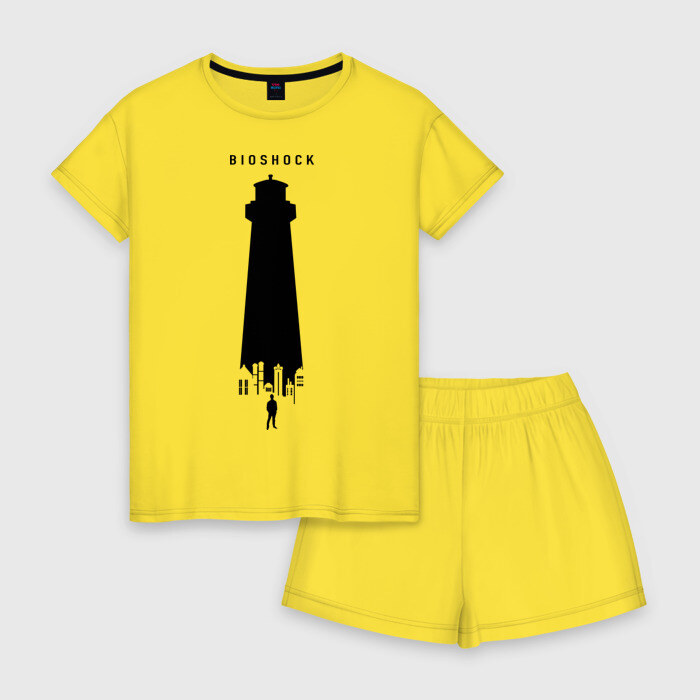 Женская пижама с шортиками хлопок с принтом Биошок маяк