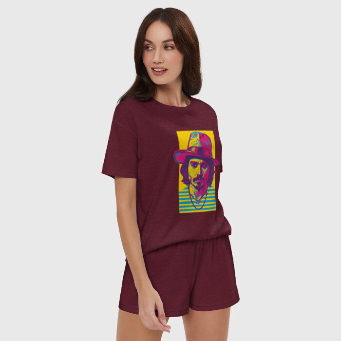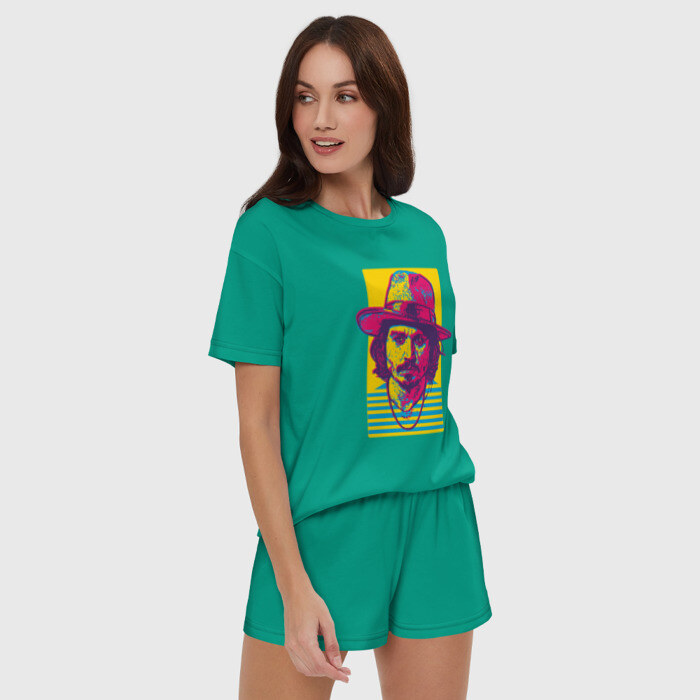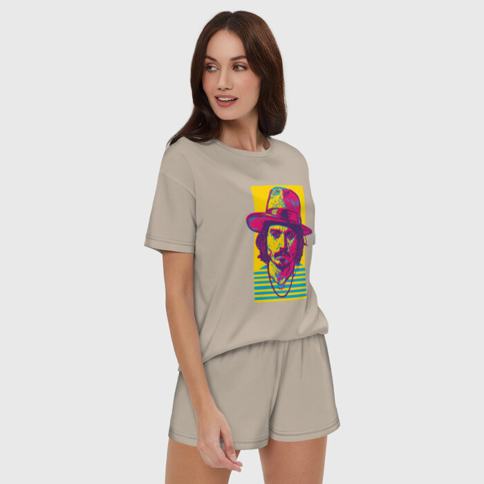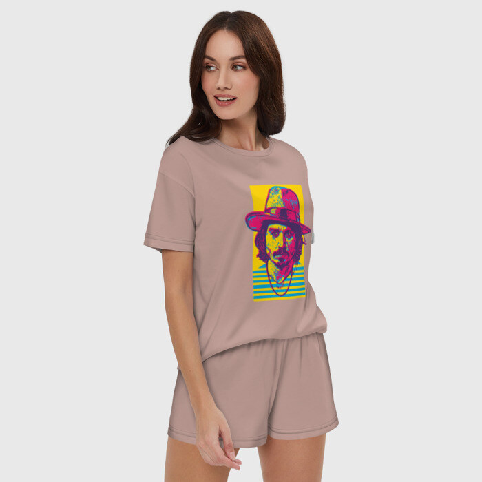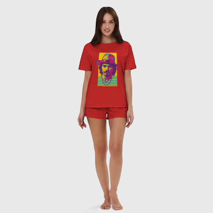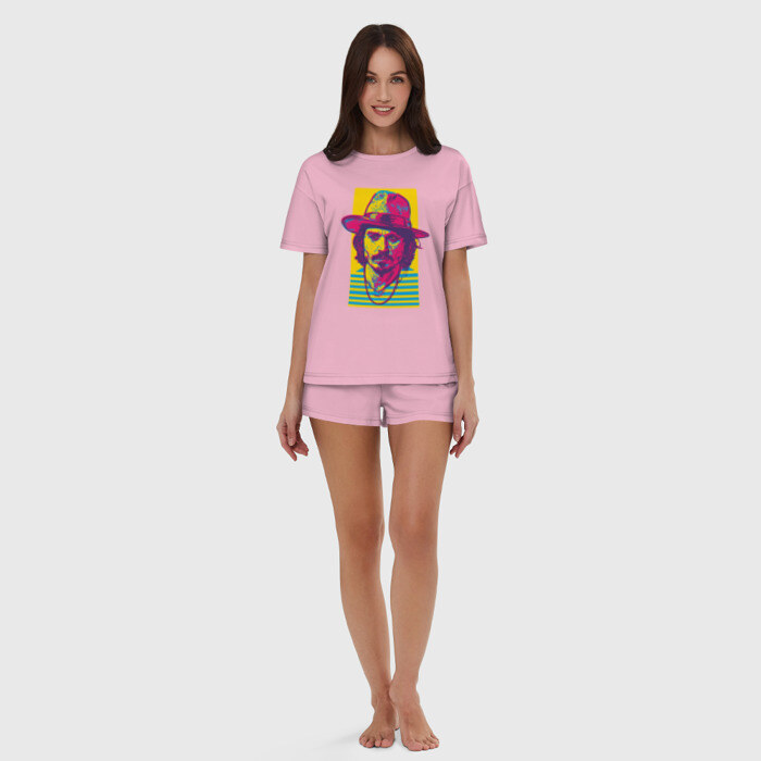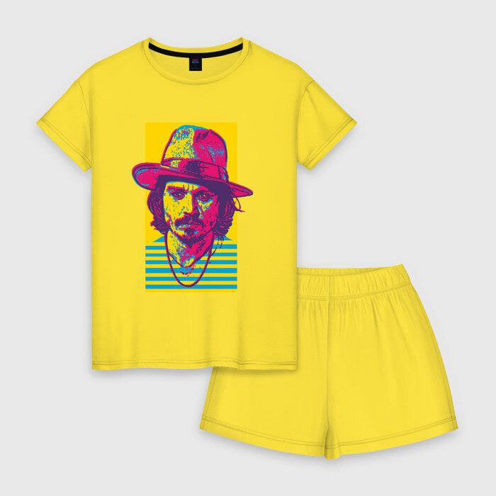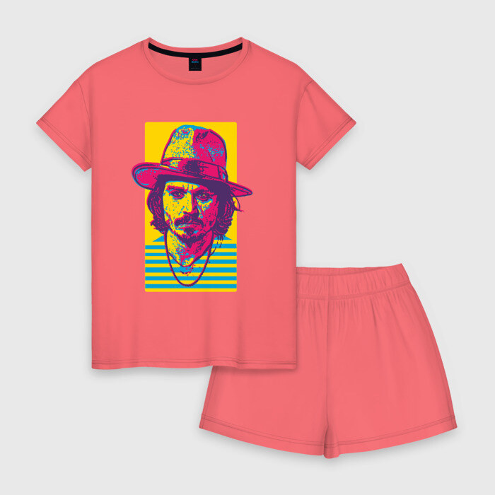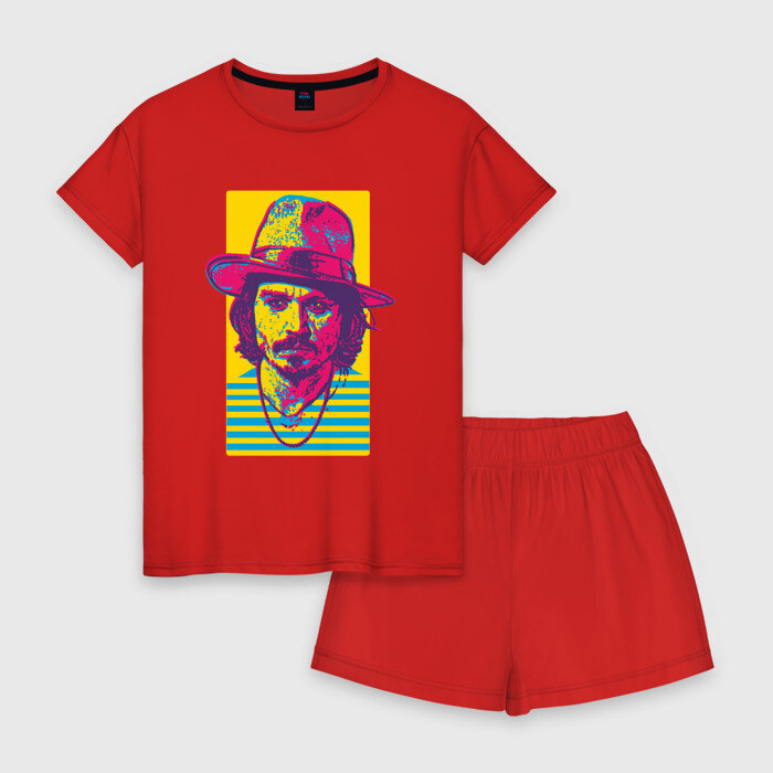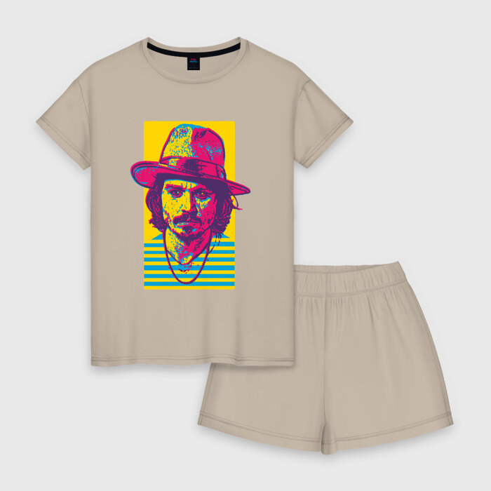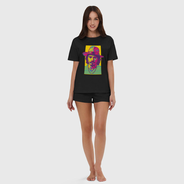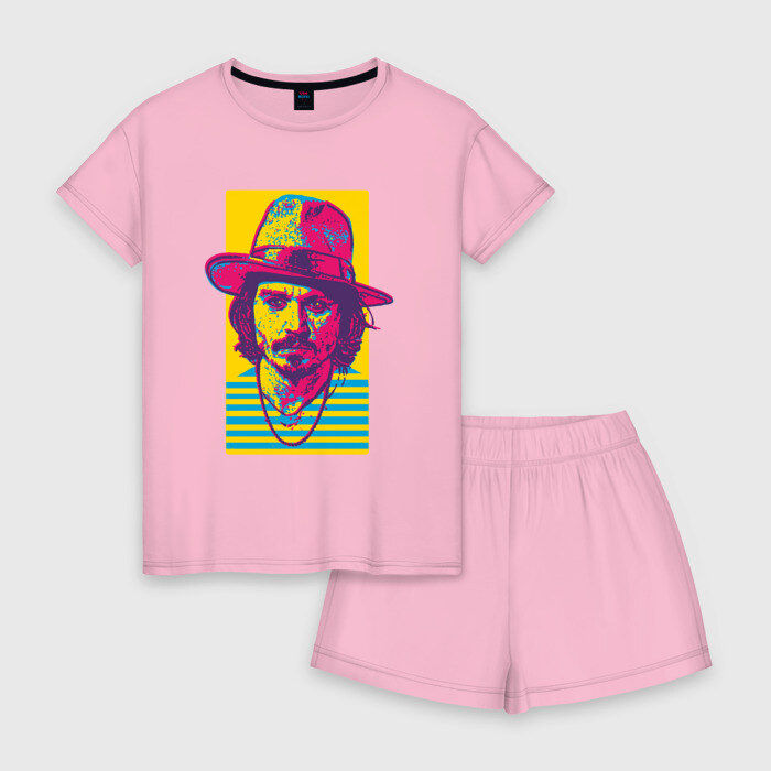 Женская пижама с шортиками хлопок с принтом Джонни Депп