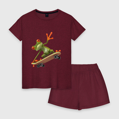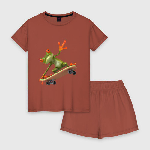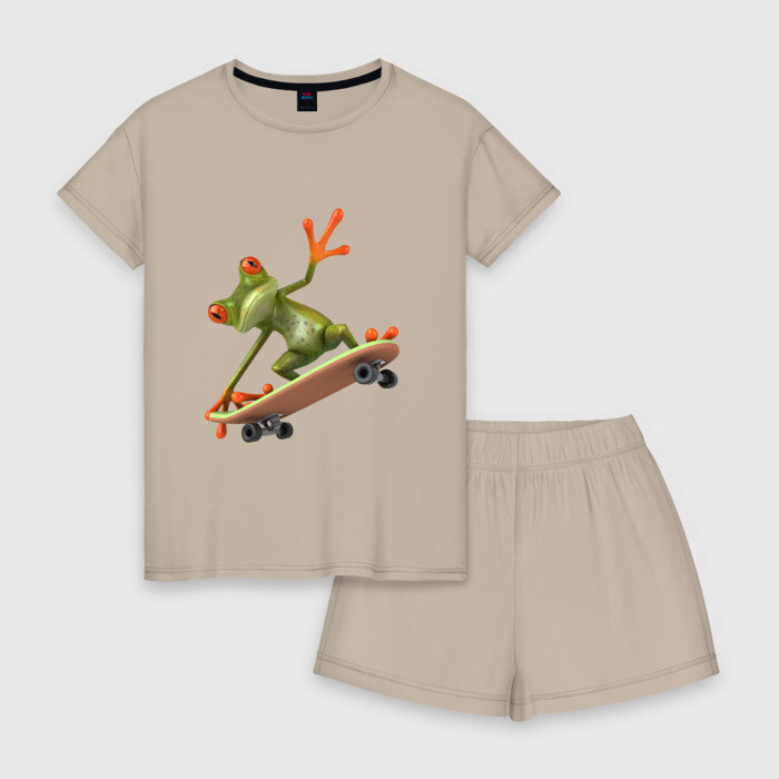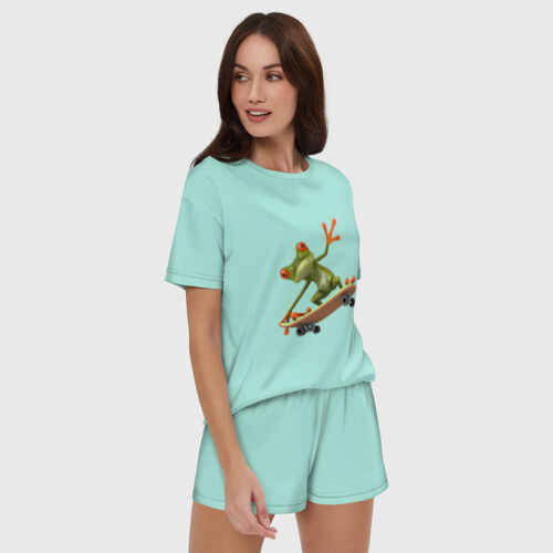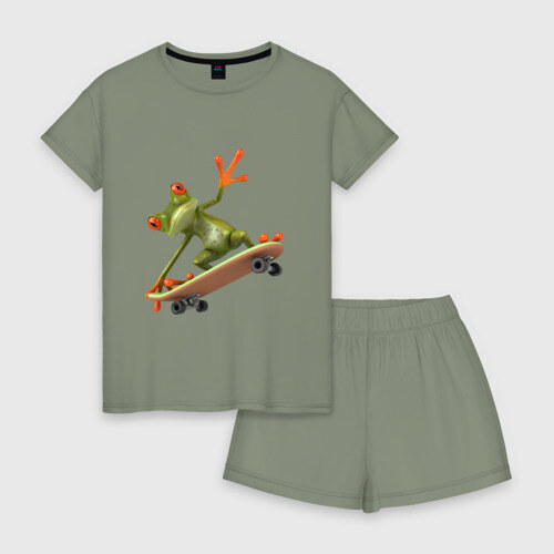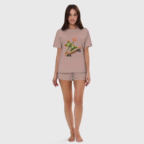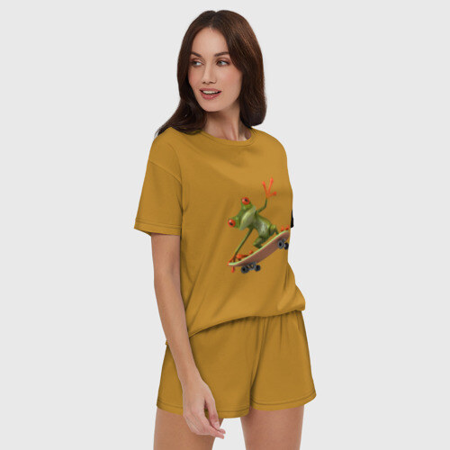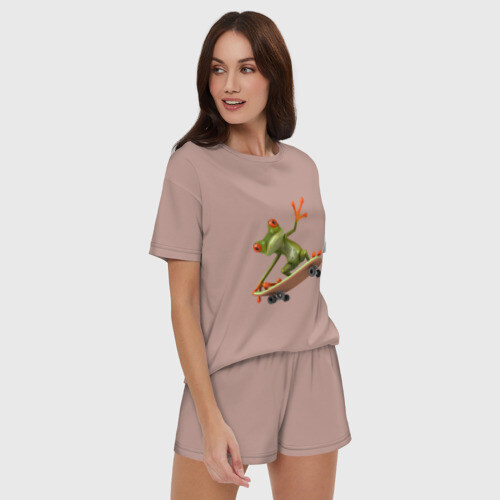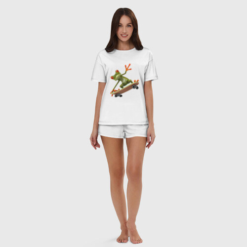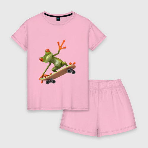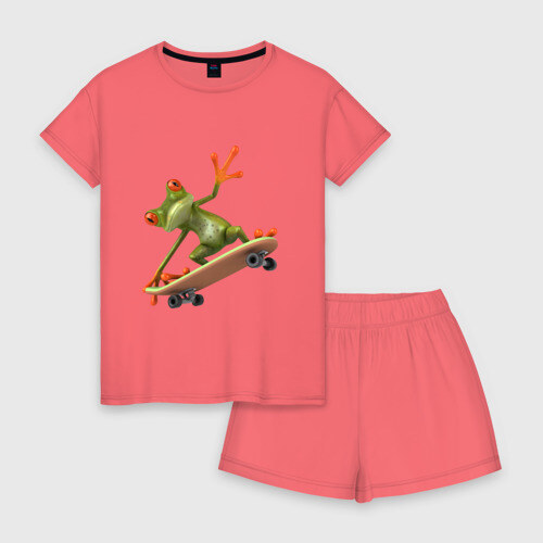 Женская пижама с шортиками хлопок с принтом Лягушка на скейтборде