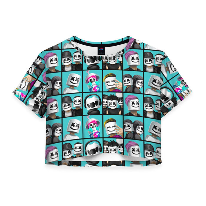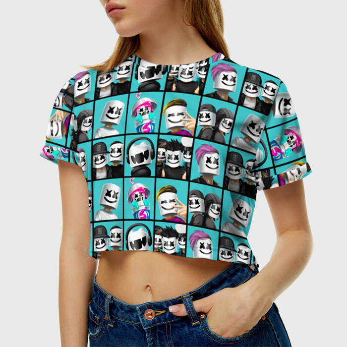 Женская футболка 3D укороченная с принтом Marshmello