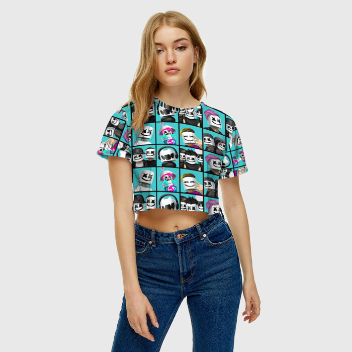 Женская футболка 3D укороченная Marshmello
