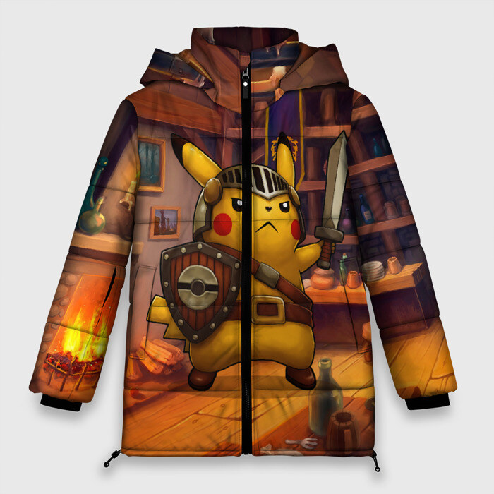 Женская зимняя куртка 3D с принтом Пикачу рыцарь