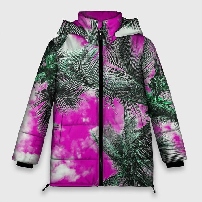 Женская зимняя куртка Oversize с принтом Palms Glitch