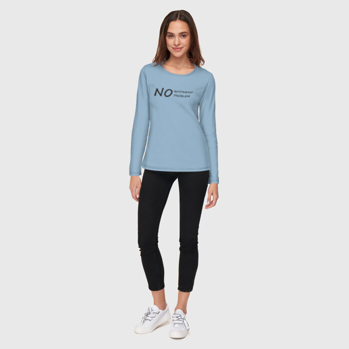Женский лонгслив хлопок с принтом No boyfriend no problem